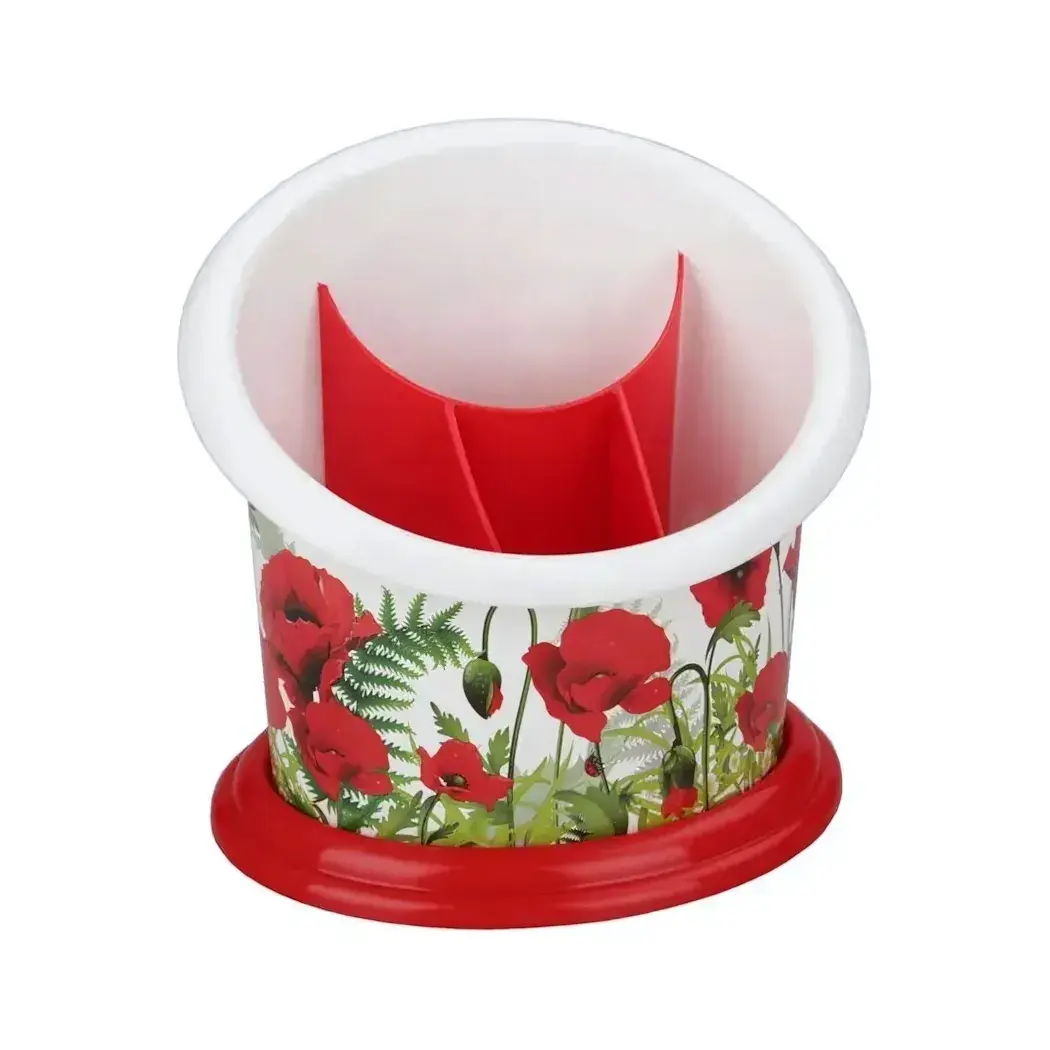 Практичная подставка для столовых приборов с цветочным дизайном — идеальное сочетание функциональности и эстетики. Эргономичная конструкция с тремя секциями обеспечивает удобное хранение вилок, ножей и ложек, сохраняя порядок на кухонном столе.