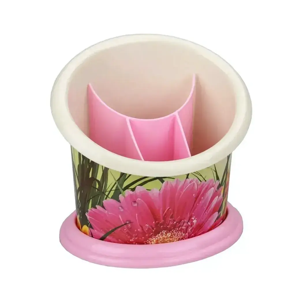 Подставка пластиковая для столовых приборов, 3 секции, цветочный узор, цвет в ассортименте