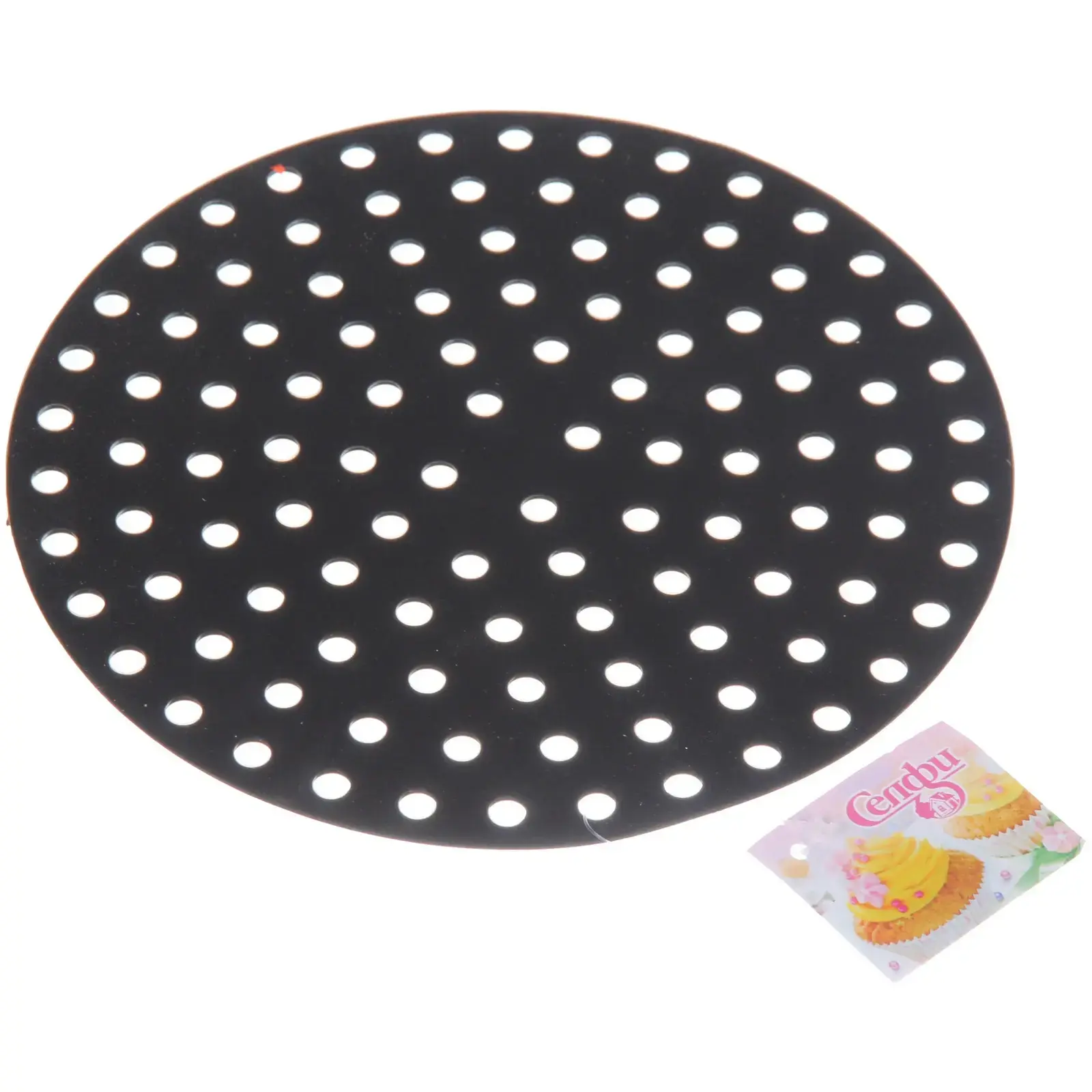 Силиконовая подставка имеет диаметр 20 см и черный цвет, что делает её стильным дополнением к любой кухне. Она подходит для использования в духовке, микроволновой печи и даже в морозильной камере. Благодаря множеству отверстий, подставка обеспечивает равномерное прогревание и предотвращает прилипание теста, что значительно упрощает процесс выпечки.