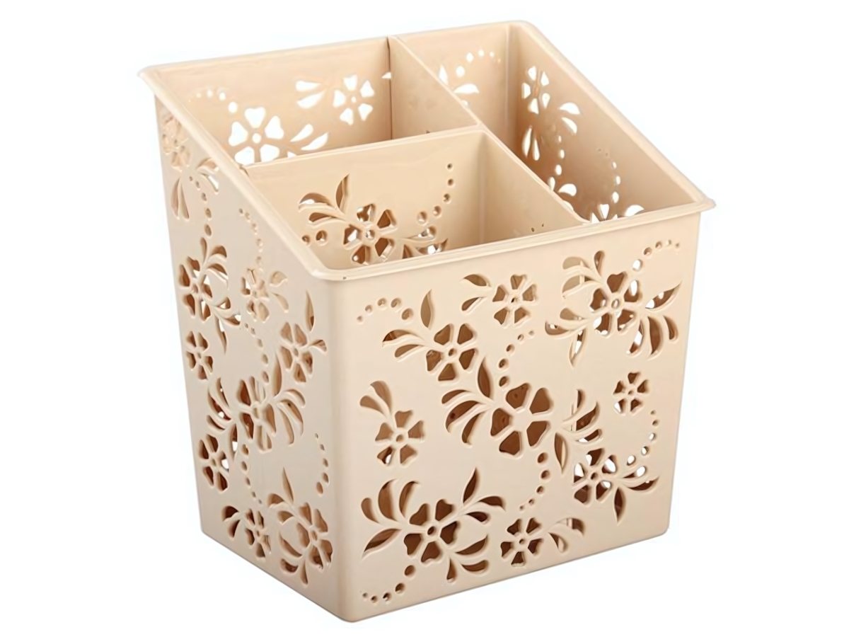 Эта бежевый универсальная подставка станет идеальным решением для организации вашего пространства. Она не только украсит ваш интерьер, но и поможет поддерживать порядок в доме или офисе. Благодаря интересному дизайну и функциональности, вы сможете легко хранить столовые приборы, расчески, пульты и канцелярские принадлежности.