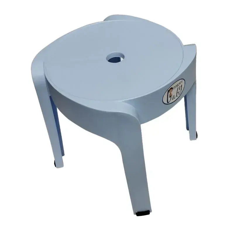 Стул детский пластиковый, безопасный, без острых углов, голубой, круглая форма с ручкой