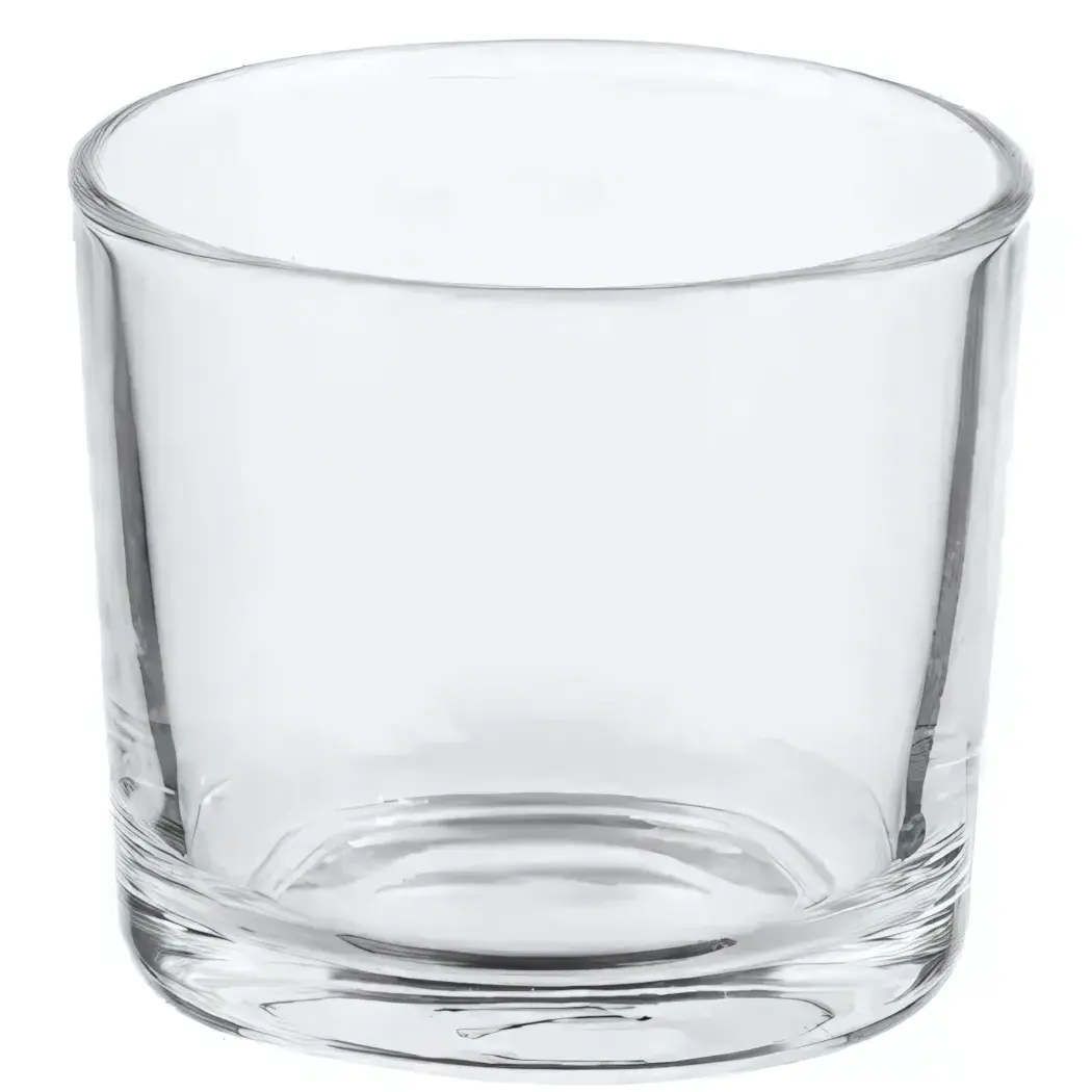 Высота подсвечника составляет 5,5 см. Материал — прозрачное стекло с ровным краем и аккуратно отшлифованными стенками. Благодаря лаконичному исполнению он становится универсальным элементом декора, который органично смотрится как самостоятельно, так и в композиции с другими аксессуарами.