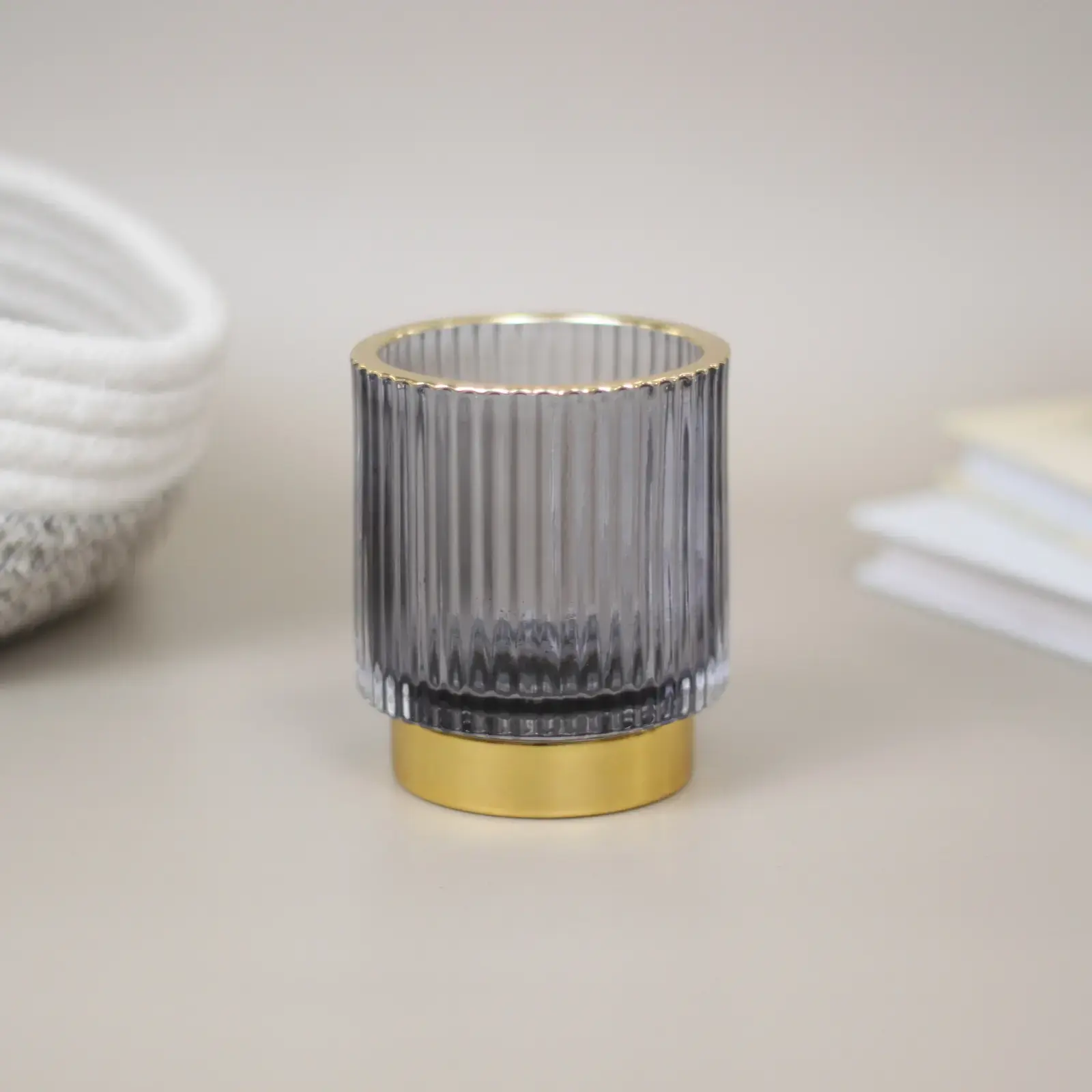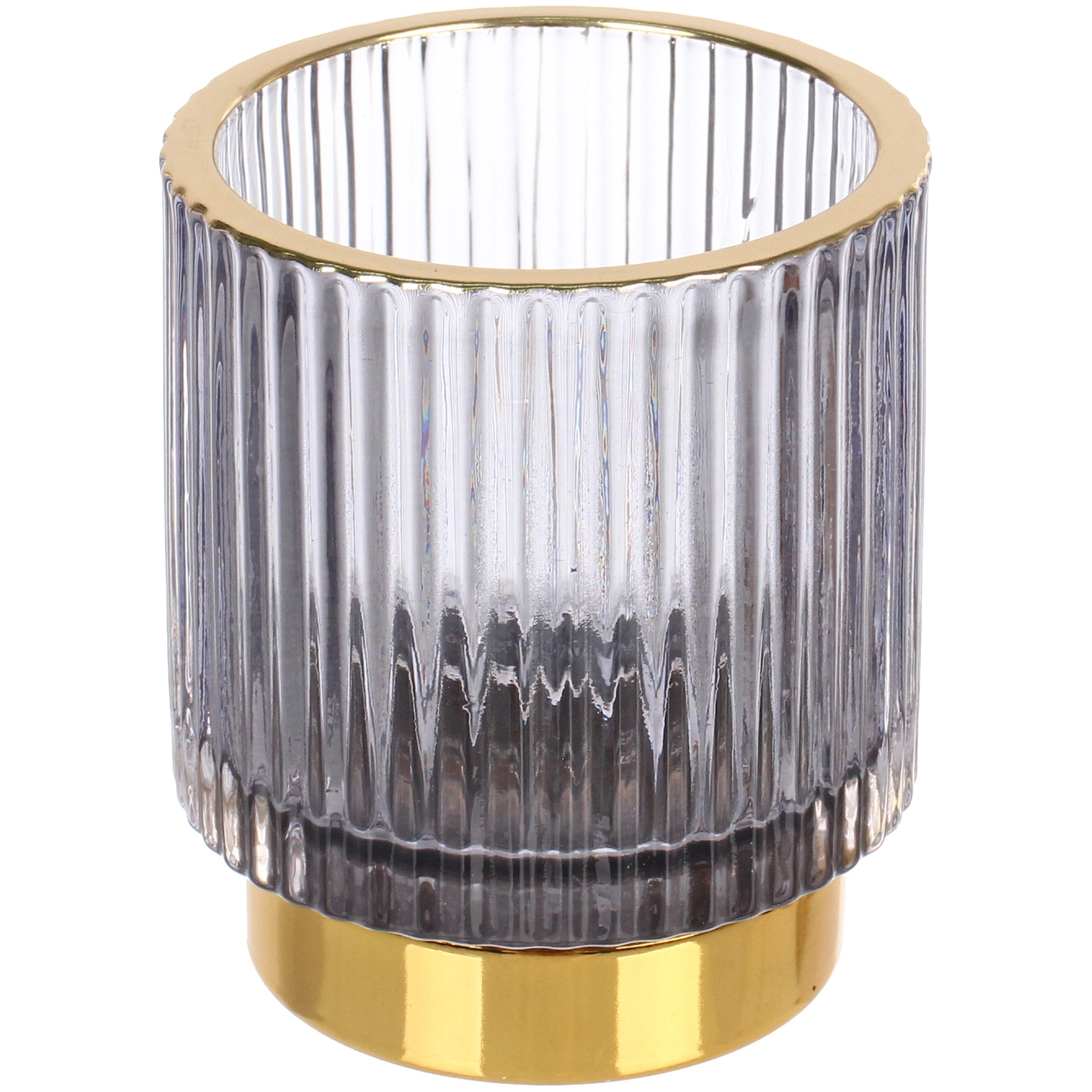 Подсвечник стеклянный "Английский стиль" 7x8см, графит, с золотой окантовкой