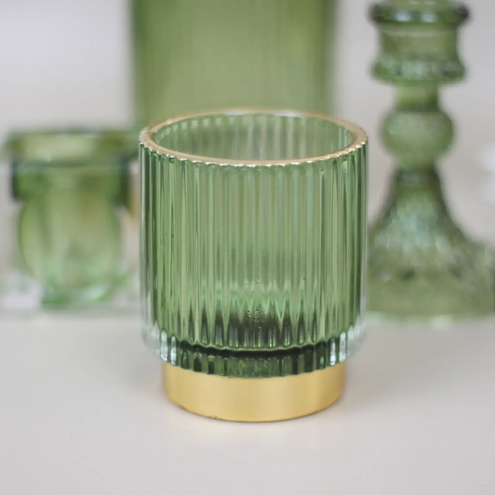 Добавьте в интерьер утончённое сияние с этим изумрудным стеклянным подсвечником, оформленным в классическом английском стиле. Его рифлёная фактура и глубокий зелёный цвет создают атмосферу тепла и уюта, а золотистое металлическое основание гармонично подчёркивает изысканность формы.