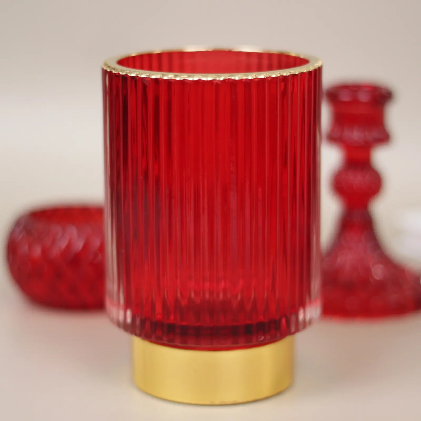 Корпус изготовлен из прочного стекла насыщенного рубинового цвета. Основание — металлическое с покрытием, придающим мягкий золотой блеск. Легко очищается от воска и пыли, что делает уход простым и быстрым. Подсвечник отгружается поштучно.