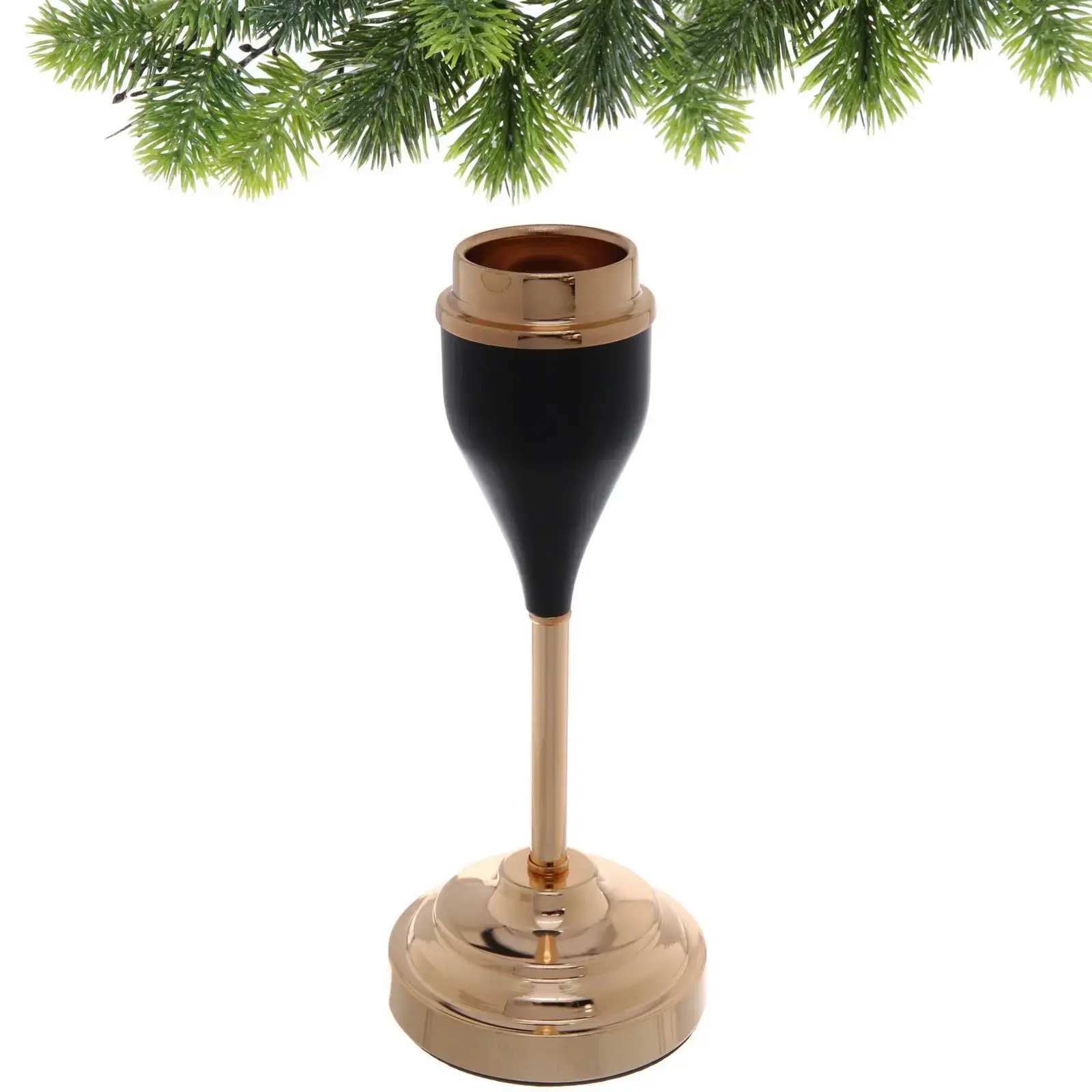 Подсвечник подходит для использования с классическими свечами и идеально подходит для украшения столов, гостиных и интерьеров в стиле модерн или лофт. Преимущества — высокое качество изготовления из металла, стильный дизайн в черном цвете с золотистыми вставками, устойчивость и долговечность.