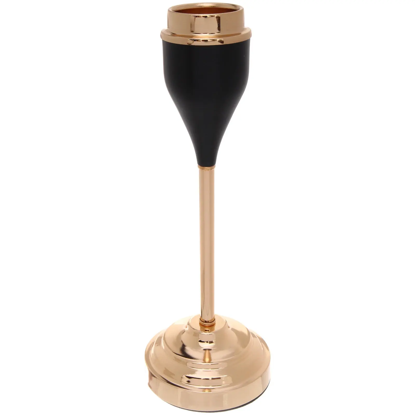 Размеры: 33 см (высота), 11.5 см (диаметр верхней части и основания). Материал: металл с глянцевым покрытием, покрытый защитным слоем от коррозии. Цвет: черный с золотыми акцентами — отлично сочетается с различными стилями оформления.