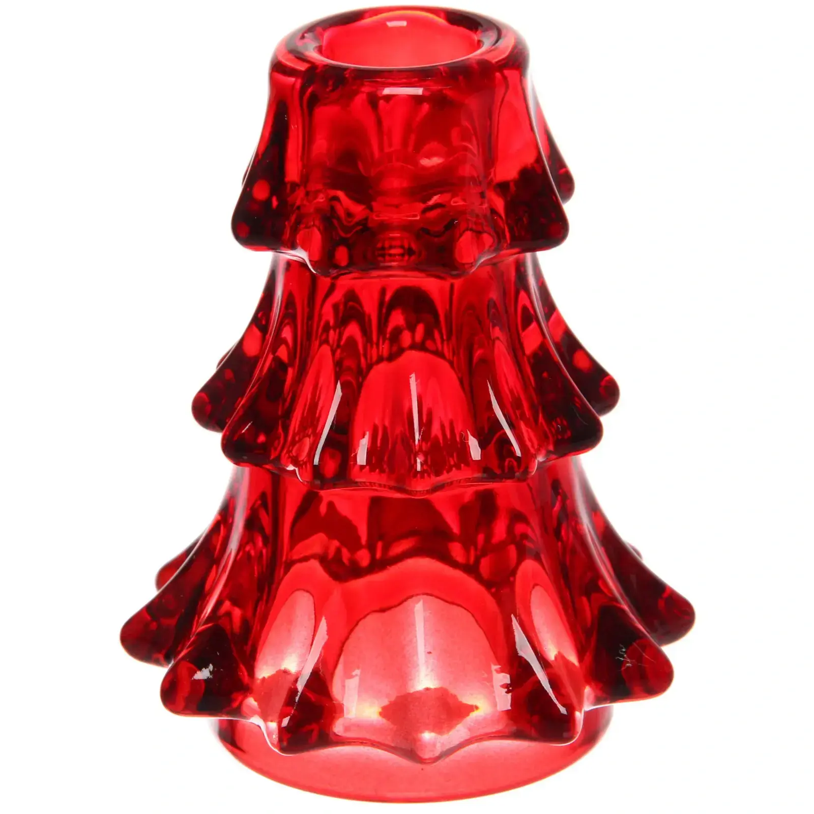 Подсвечник 'Елочка' 9*11 см, красный, стекло, для праздничной атмосферы