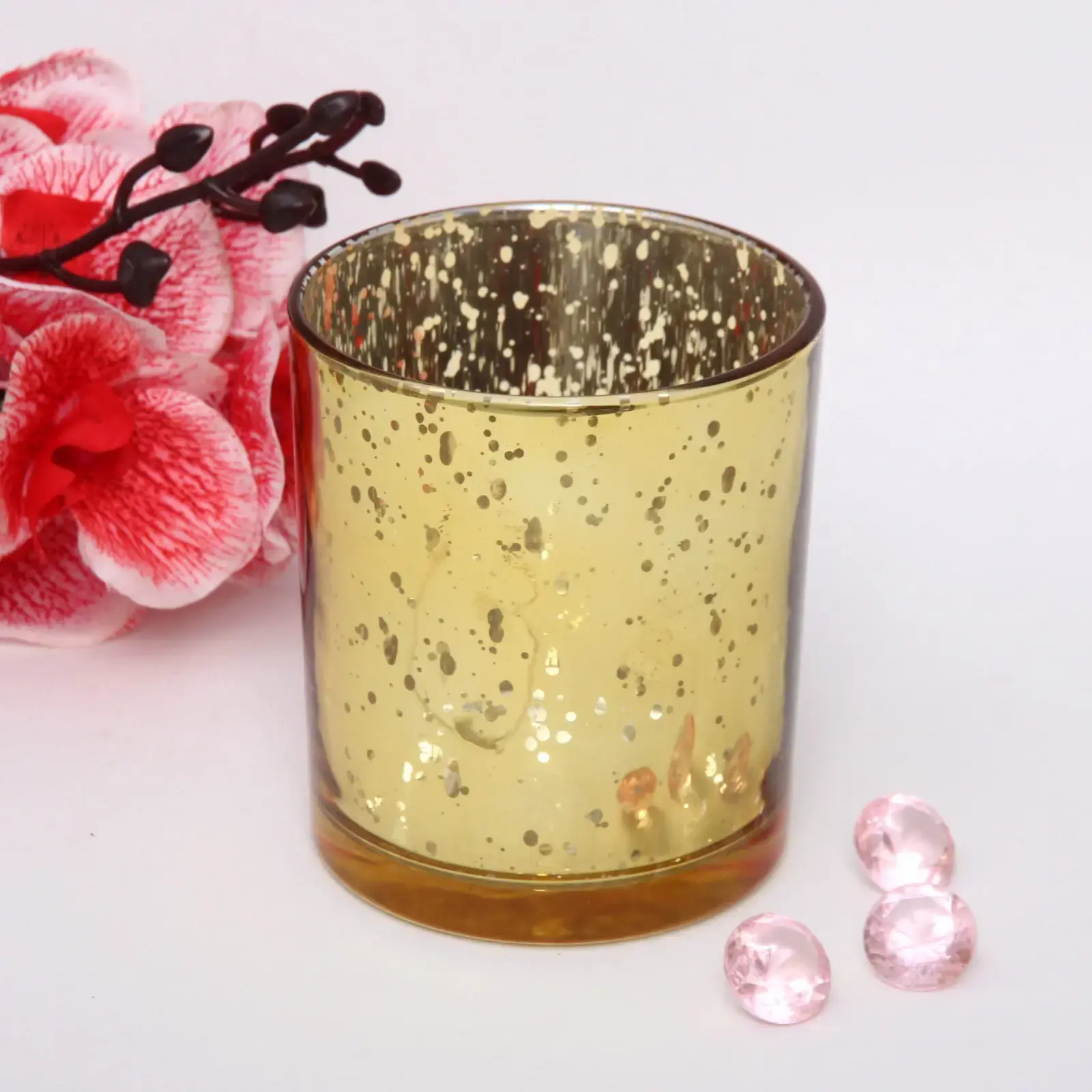 Подсвечник "Fantasy" в золотистом цвете — это стильное интерьерное украшение, которое создаст атмосферу уюта и тепла в любом помещении. Его утончённый дизайн с зеркальным блеском и декоративным крапчатым узором привлекает внимание, подчёркивая вашу индивидуальность и вкус. Такой декоративный элемент уместен как в гостиной, так и в спальне или на праздничном столе.