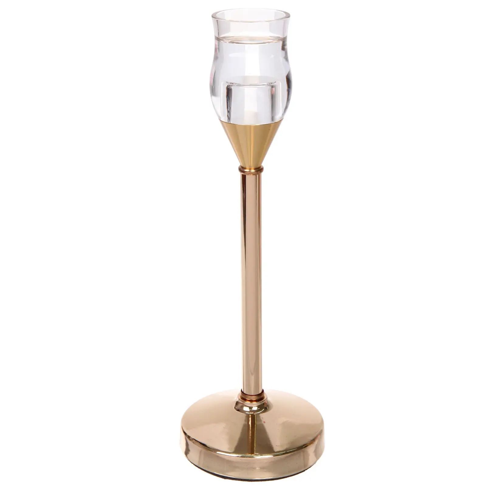 Этот элегантный подсвечник «GLASS» создан для создания уютной атмосферы и дополнения интерьера вашего дома. Идеально подходит для свечей и подходит для использования как декоративный элемент в гостиных, спальнях или на праздниках. Его привлекательный дизайн с прозрачной верхней частью и золотистой основой придает интерьеру изысканность и тепло.