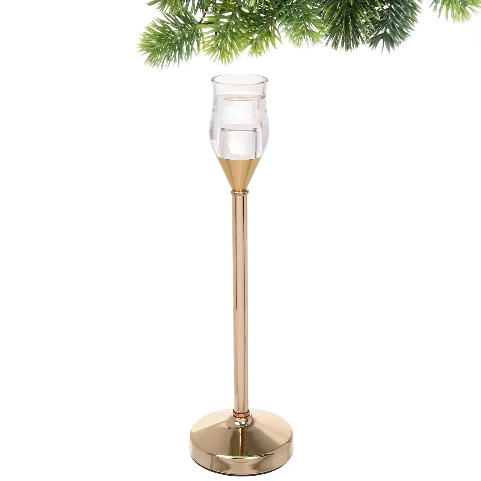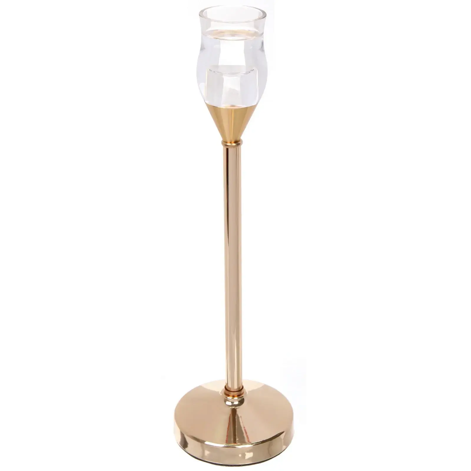 Подсвечник «GLASS» 3,3х9х32 см, золотой, из металла и стекла для интерьера