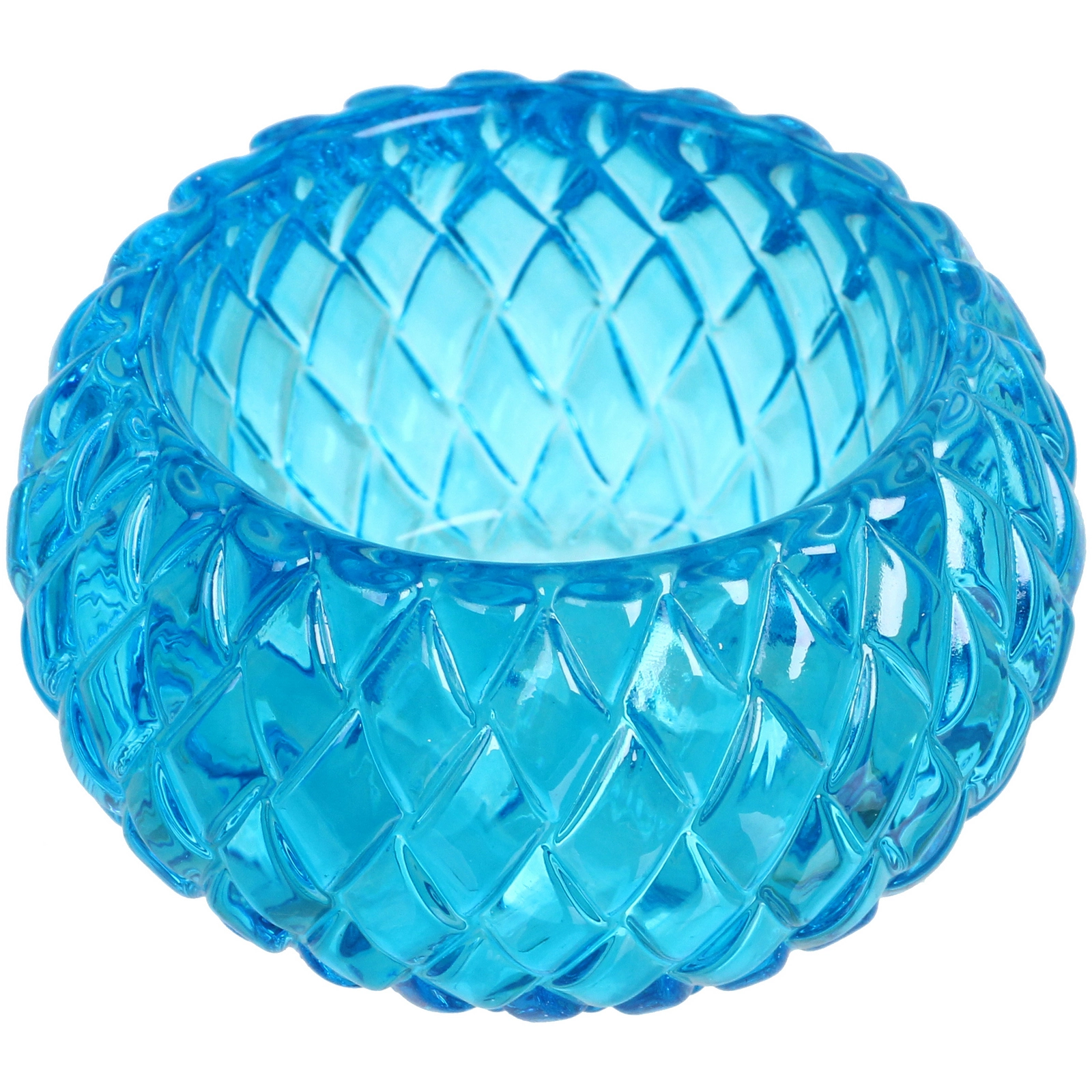 Диаметр подсвечника — 7,5 см, высота — 4,3 см. Материал — стекло. Отгружается один товар, цвет определяется согласно указанному (голубой). Уход прост: достаточно протирать мягкой тканью и избегать резких перепадов температур.