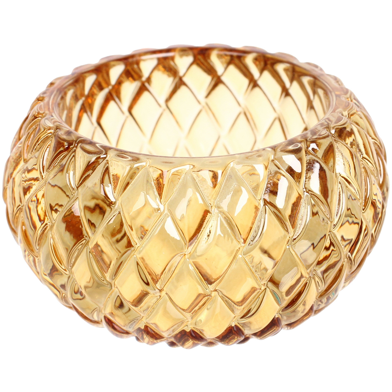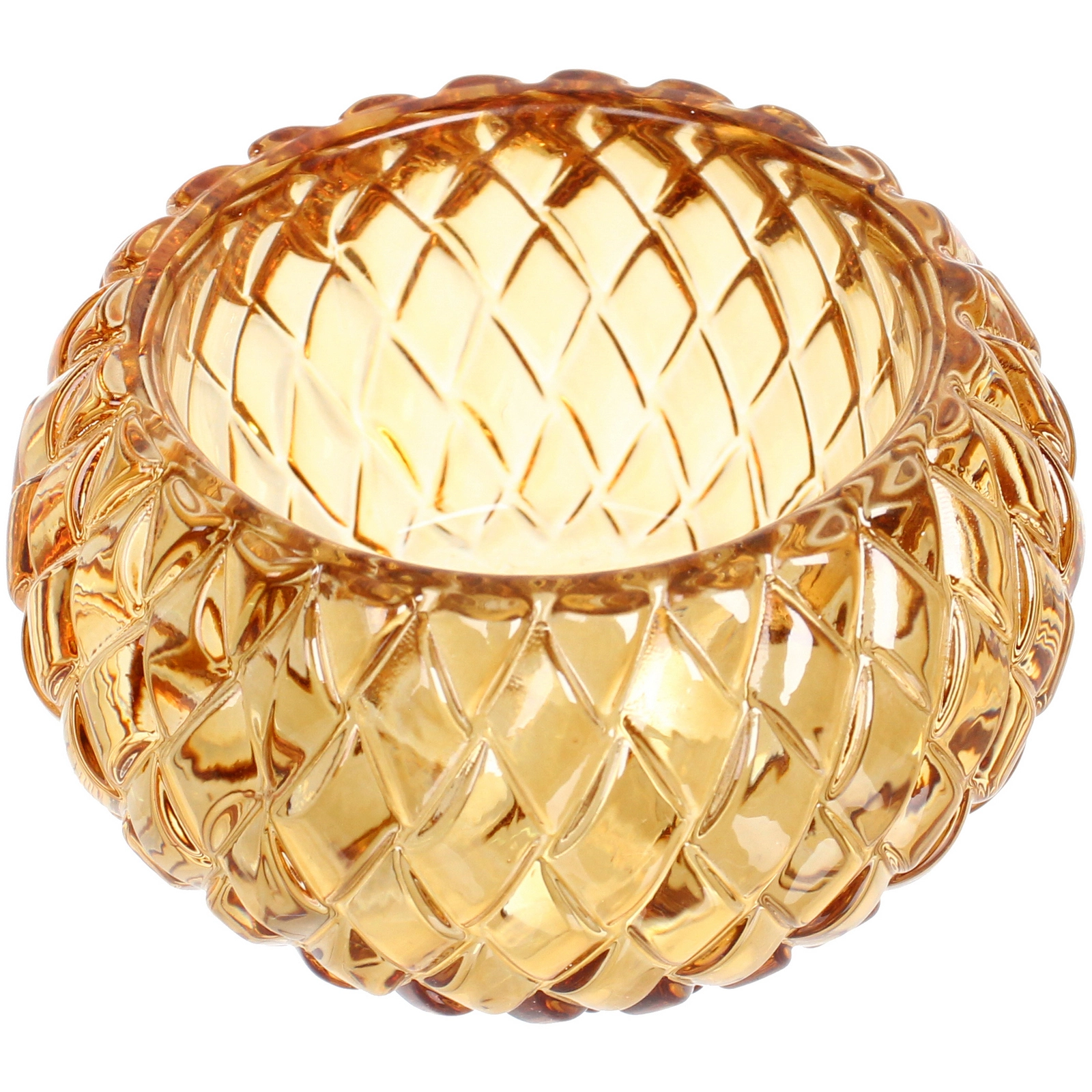 Материал – прочное стекло, которое не тускнеет со временем и выдерживает нагрев от свечи. Отгружается один изделие, цвет – янтарный. Размер оптимален для стандартных чайных свечей. Этот подсвечник подарит вашему дому чарующее сияние и станет украшением, которое не надоедает.