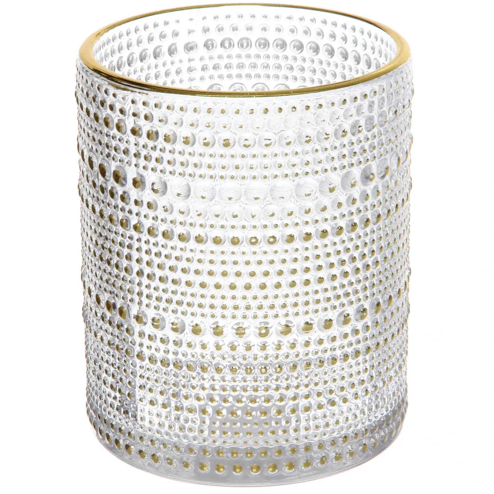 Изящный стеклянный подсвечник «Хрустальный блеск» создаёт атмосферу тепла и уюта, добавляя в помещение лёгкое мерцание огня, отражённое в многочисленных гранях рельефного узора. Его прозрачная поверхность украшена золотистыми акцентами, которые притягивают взгляды и подчеркивают утонченность изделия.