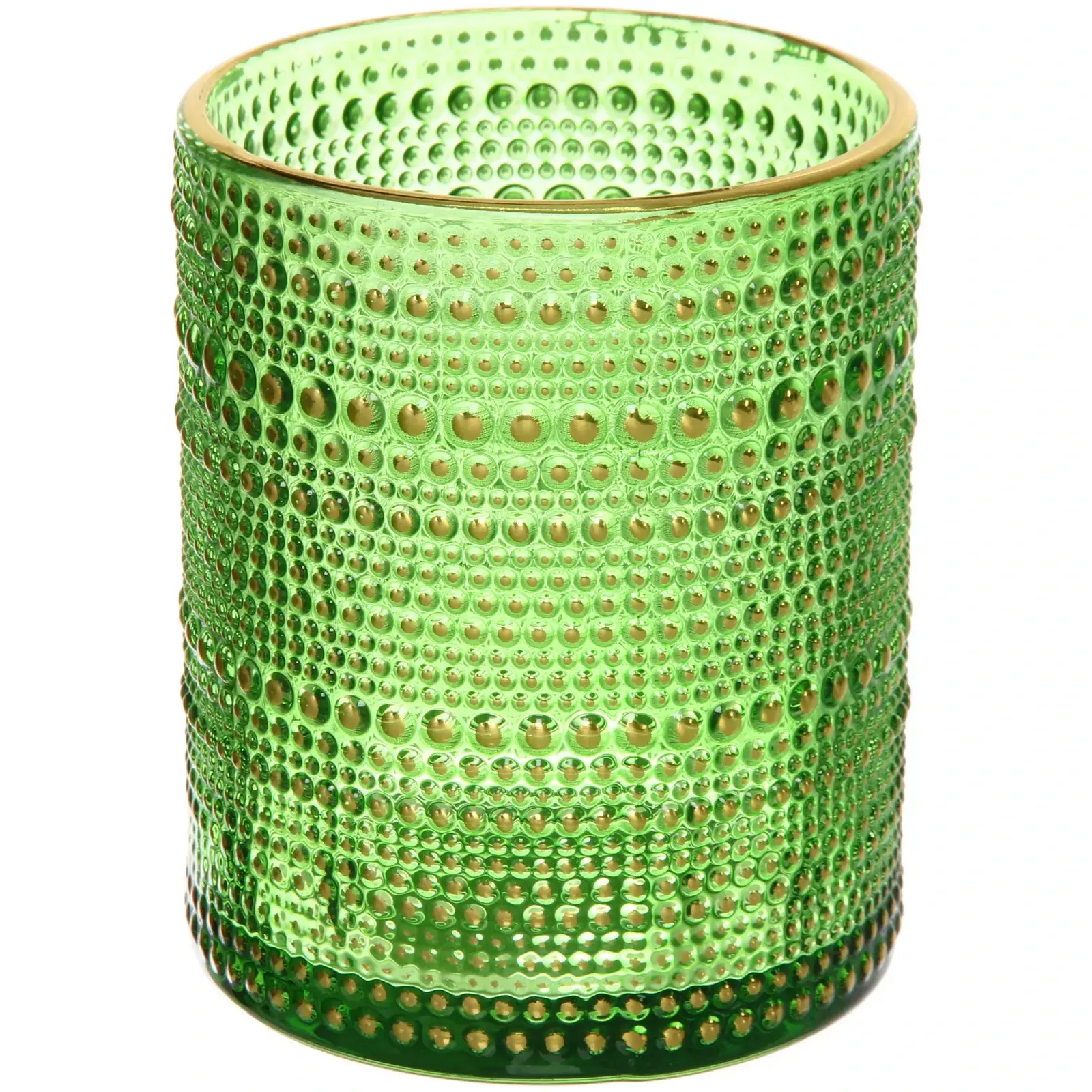 Создайте атмосферу уюта и тепла с подсвечником «Хрустальный блеск» в глубоких изумрудных тонах. Его рельефная поверхность с утонченным узором из мелких выпуклых точек завораживает переливами света и тени, а гладкий верхний край и золотистая окантовка придают изделию благородный акцент. Этот аксессуар станет яркой деталью в интерьере, подчеркивающей вкус и внимание к деталям.