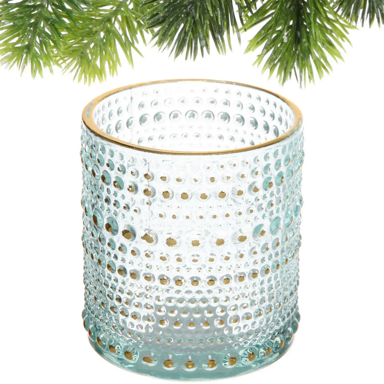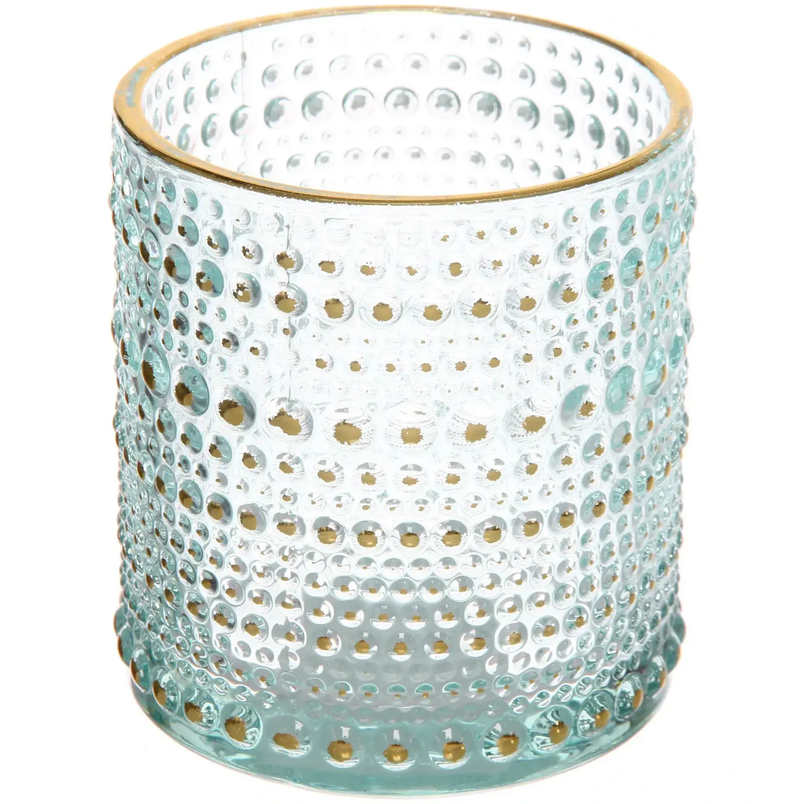 Подсвечник стеклянный «Хрустальный блеск» 7x7,8см, голубой, рельефный узор, золотистая окантовка
