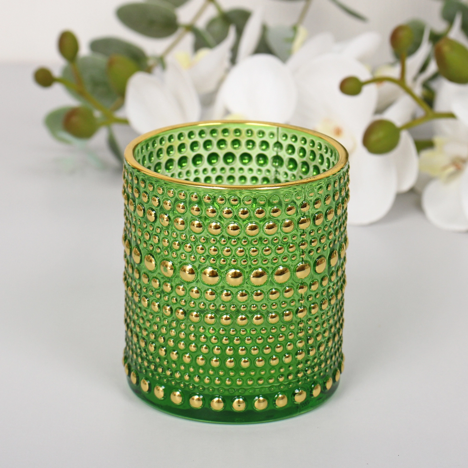 Идеален для использования в вечерних сервировках, романтических ужинах или как акцент на полке, камине или журнальном столике. Качественное стекло пропускает мягкое свечение, а золотистая окантовка придаёт изделию благородство, сочетаясь с классическими и современными интерьерами.