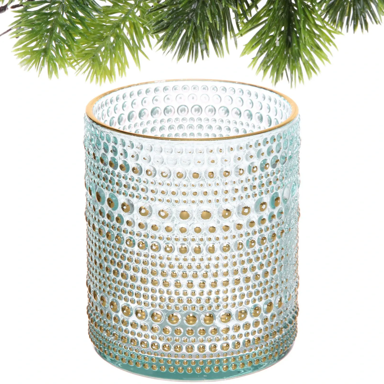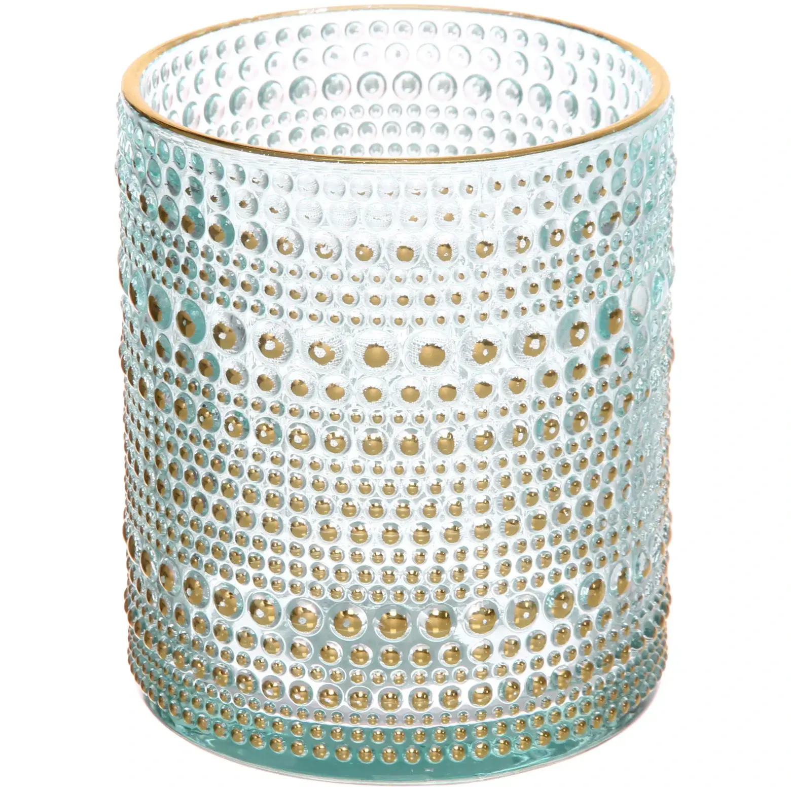 Этот стеклянный подсвечник с элегантным голубым оттенком и утончённой золотистой окантовкой по верхнему краю станет стильным акцентом любого интерьера. Его рельефная поверхность, украшенная округлыми элементами, эффектно преломляет свет, создавая тёплое и атмосферное освещение. Благодаря гармоничному сочетанию цвета и фактуры изделие выглядит дорого и изящно, добавляя ощущение уюта и комфорта.