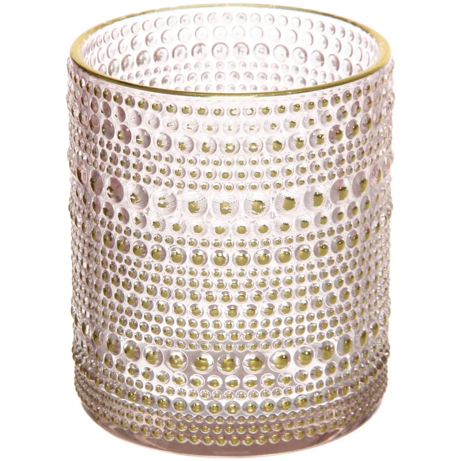 Этот стеклянный подсвечник с рельефным узором и золотистой каймой создаст уютную атмосферу в любом интерьере. Надежный материал и изящный дизайн делают его отличным выбором для украшения дома или в качестве подарка.