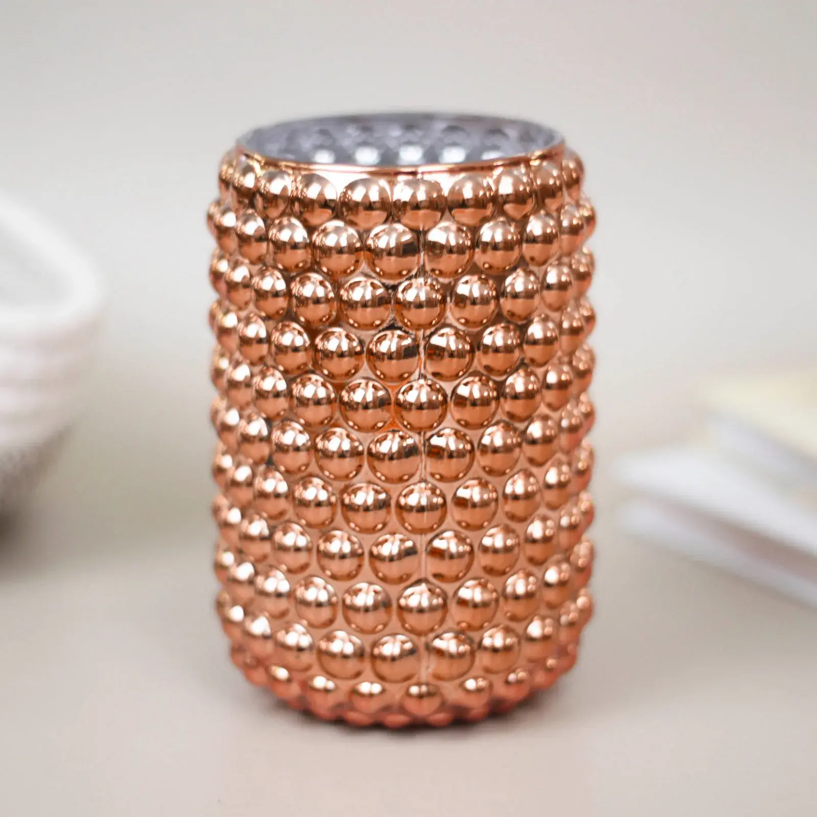 Размеры подсвечника — 8×12,5 см. Изготовлен из стекла с декоративным металлическим покрытием, благодаря чему сочетает в себе прочность и утонченность. Янтарный цвет придает свечению теплый, мягкий оттенок. Легко ухаживать: достаточно аккуратно протирать сухой или слегка влажной тканью.