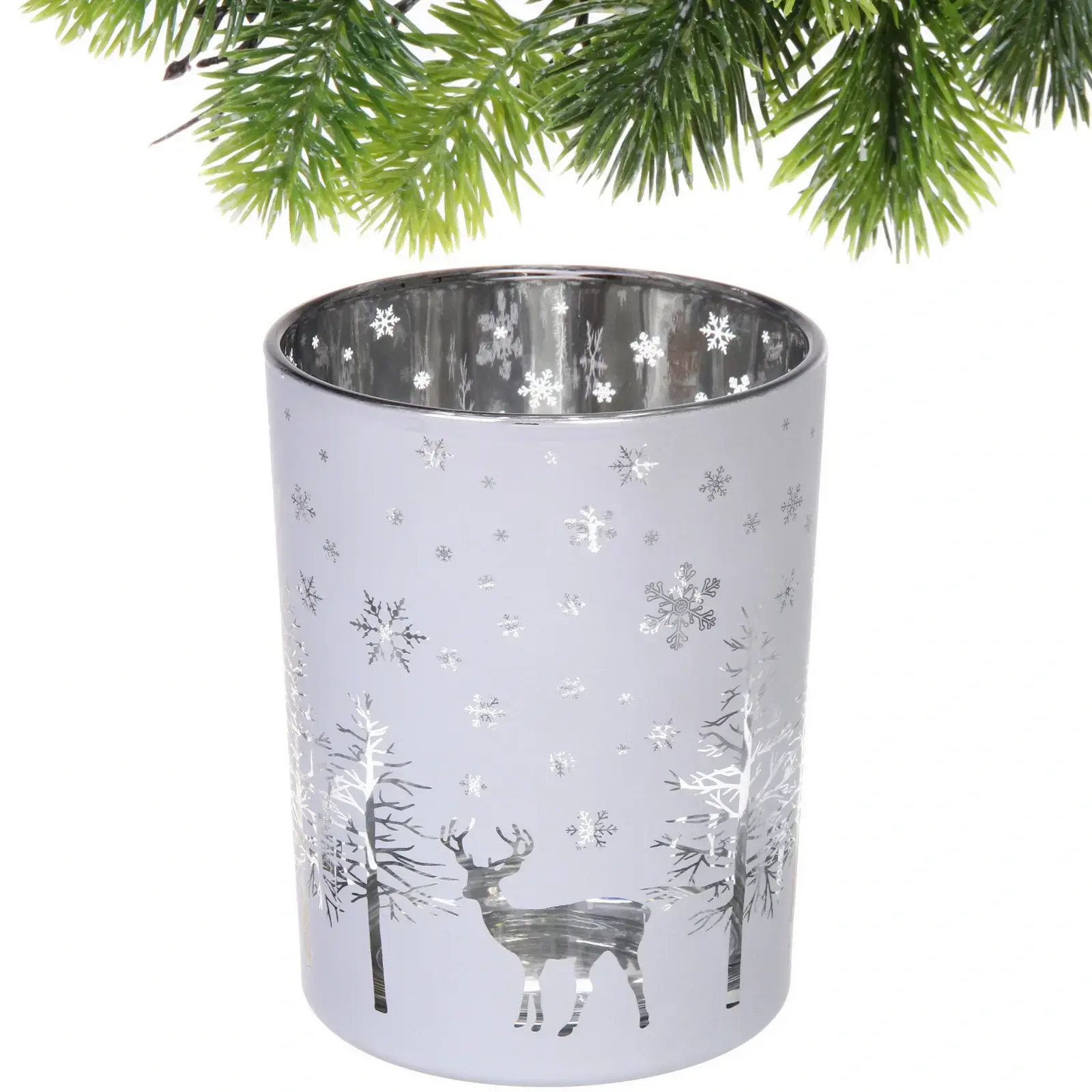 Размер подсвечника составляет 10х12,5 см, что делает его компактным и удобным для размещения на столе или полке. Изготовленный из стекла, он обладает зеркальной внутренней отделкой, что создает эффект отражения и добавляет изысканности. Этот подсвечник станет не только функциональным элементом, но и стильным украшением вашего дома в зимний период.