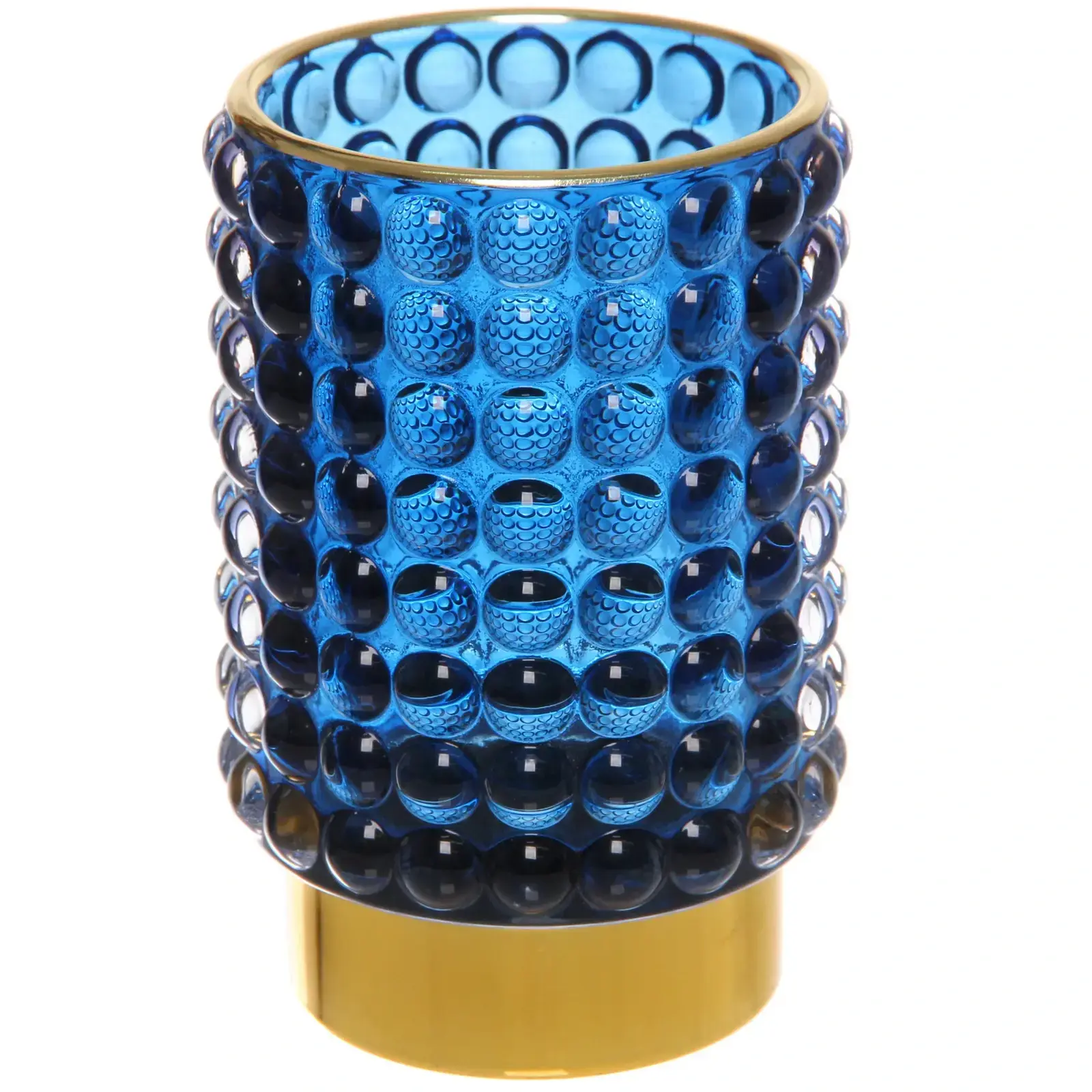 Подсвечник «Мерцание» — это утонченный элемент декора, который мгновенно привносит тепло и гармонию в любой интерьер. Его глубокий сапфировый оттенок в сочетании с изысканной золотистой окантовкой создает впечатляющую игру света и теней при свечении. Такой аксессуар станет центром внимания на столе или полке, добавив чарующее мерцание в вечернюю обстановку.
