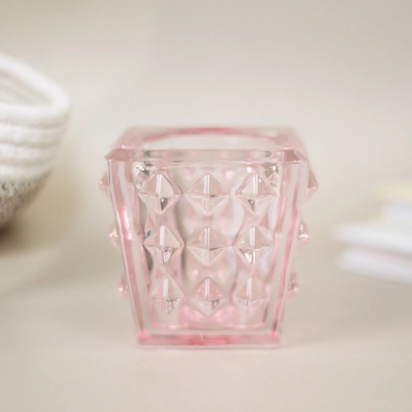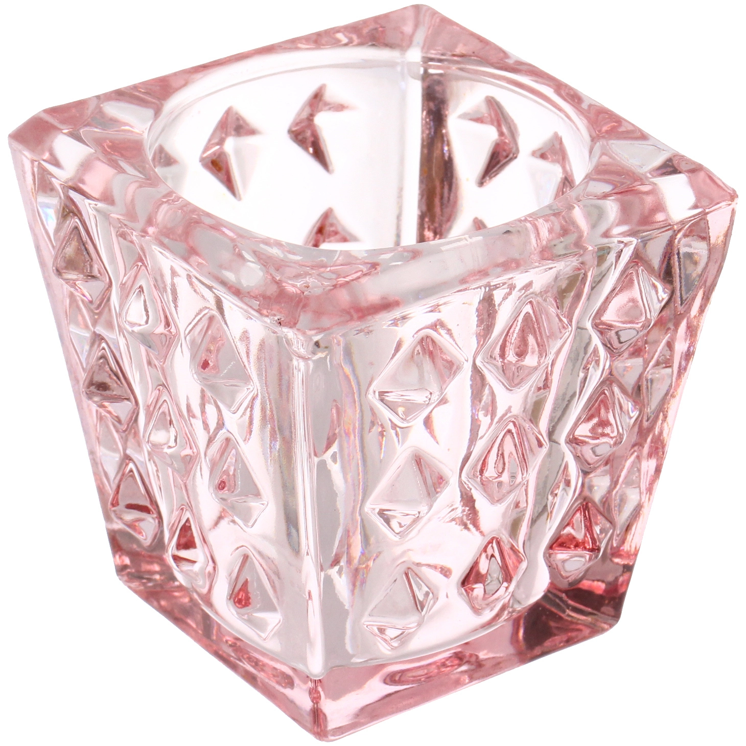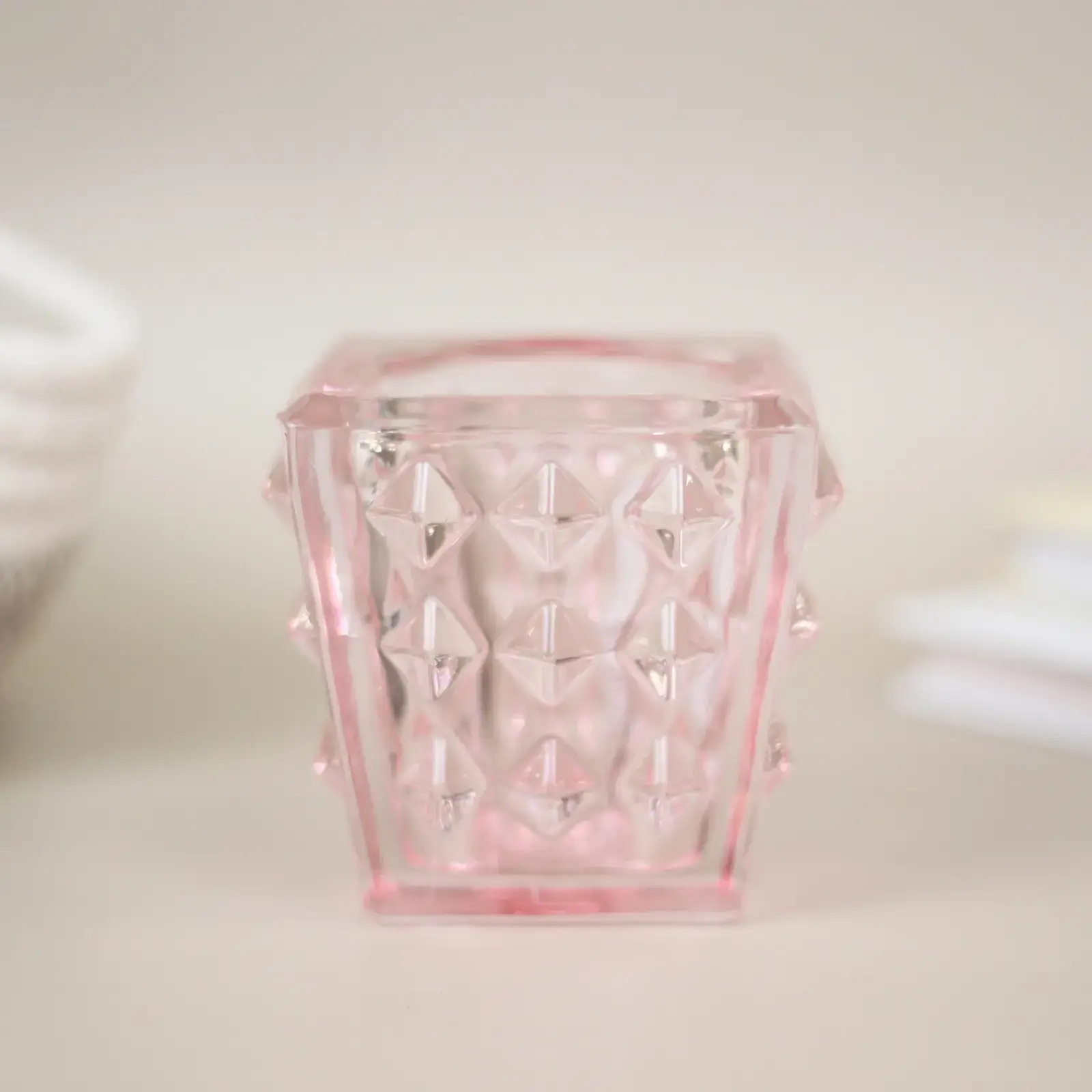 Подсвечник «Нежность» — изящный элемент декора, который создаст теплое и романтичное освещение в вашем доме. Его нежный розовый оттенок и прозрачная фактура стекла добавляют интерьеру утонченности и мягкости, а рельефный узор в виде повторяющихся ромбов красиво преломляет свет свечи, усиливая эффект уюта.