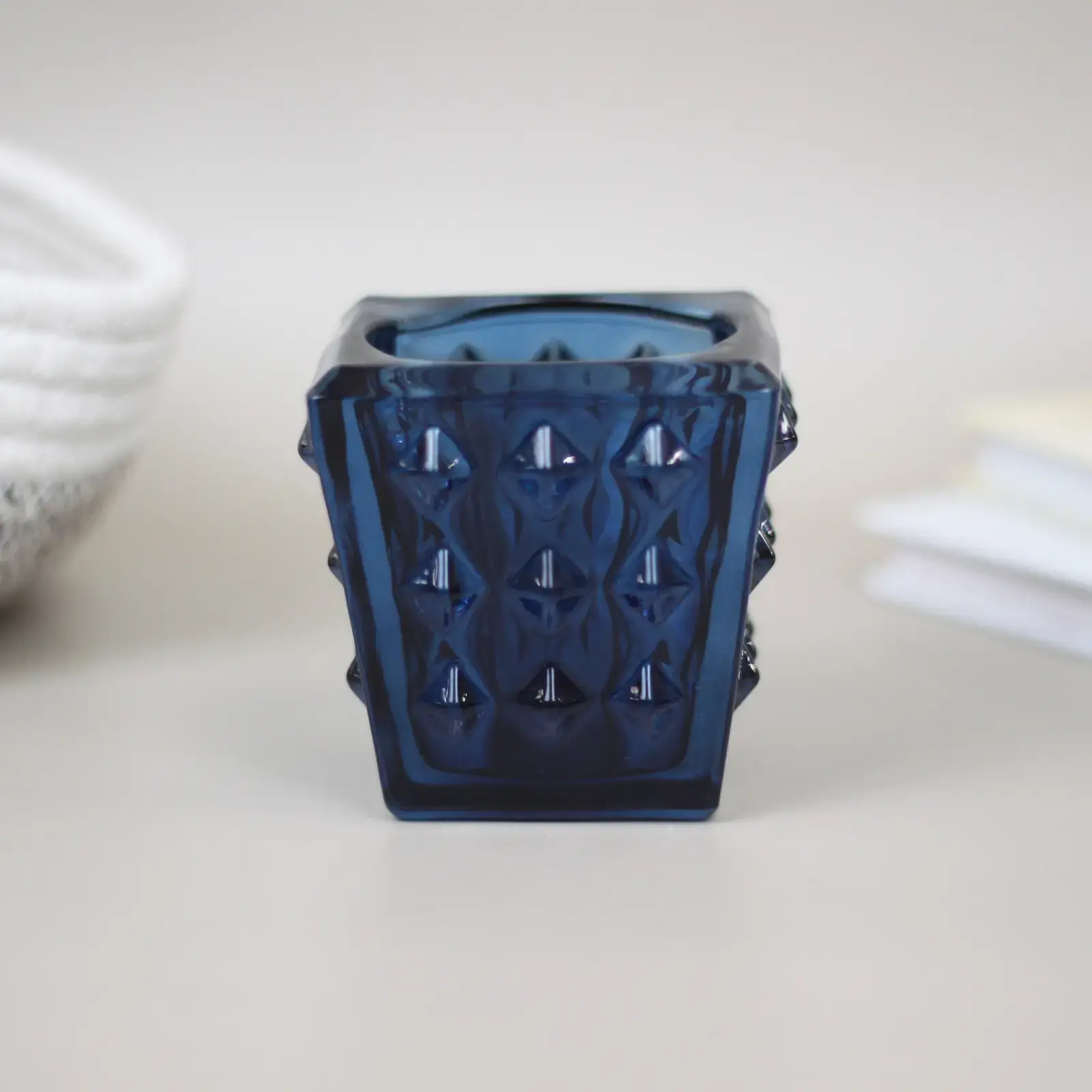 Подсвечник предназначен для установки стандартных свечей-таблеток или небольших цилиндрических свечей. Он легко вписывается в дизайн гостиной, спальни, кухни или зоны отдыха. Компактные размеры 7,7x7,5 см позволяют разместить его как на столе, так и на полке, комоде или подоконнике. Товар отгружается поштучно, цвет — тёмно-синий.