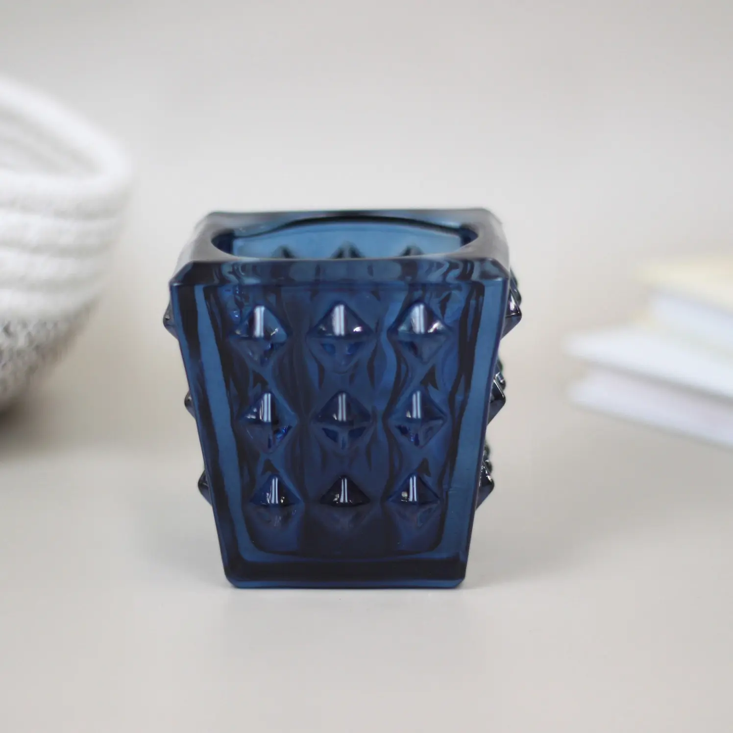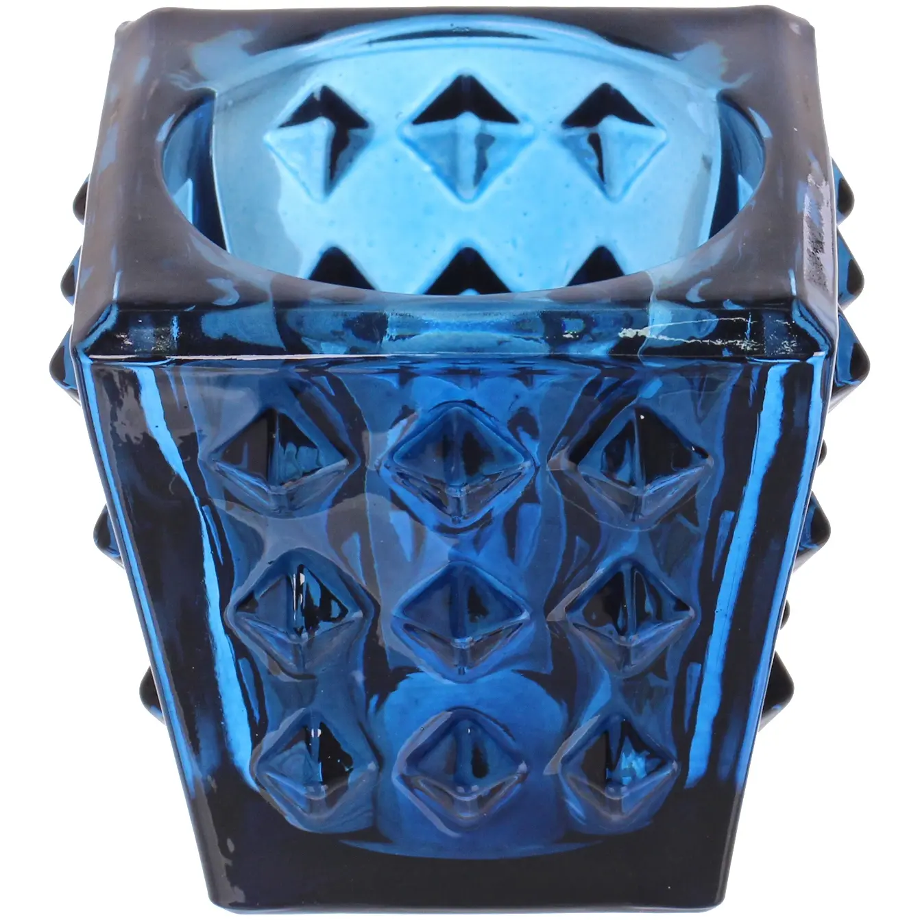Тёмно-синий стеклянный подсвечник «Нежность» добавит интерьеру атмосферу уюта и гармонии. Его рельефная поверхность с узором из ромбов красиво преломляет свет свечи, создавая изысканную игру бликов и теней. Такой аксессуар идеально подойдёт для романтического вечера, уютной встречи с друзьями или спокойного отдыха в одиночестве.