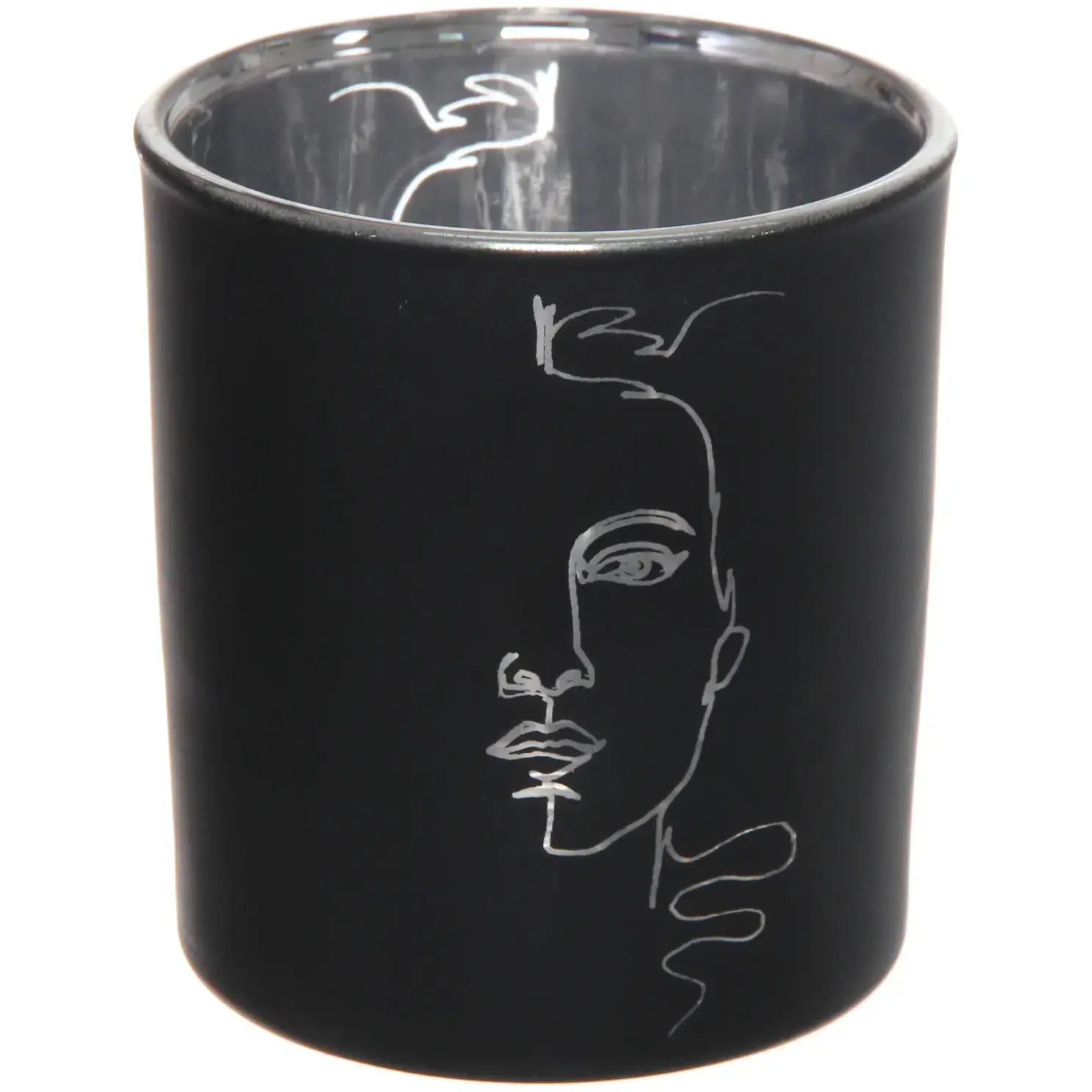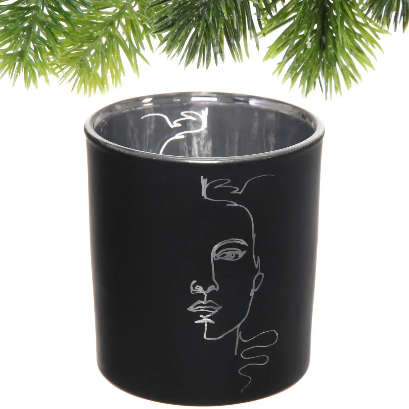 Создайте атмосферу уюта и тепла с подсвечником «Нежный силуэт». Его матовая черная поверхность украшена утонченным контурным рисунком лица, а серебристое внутреннее покрытие красиво отражает свет свечи, усиливая эффект мягкого сияния.