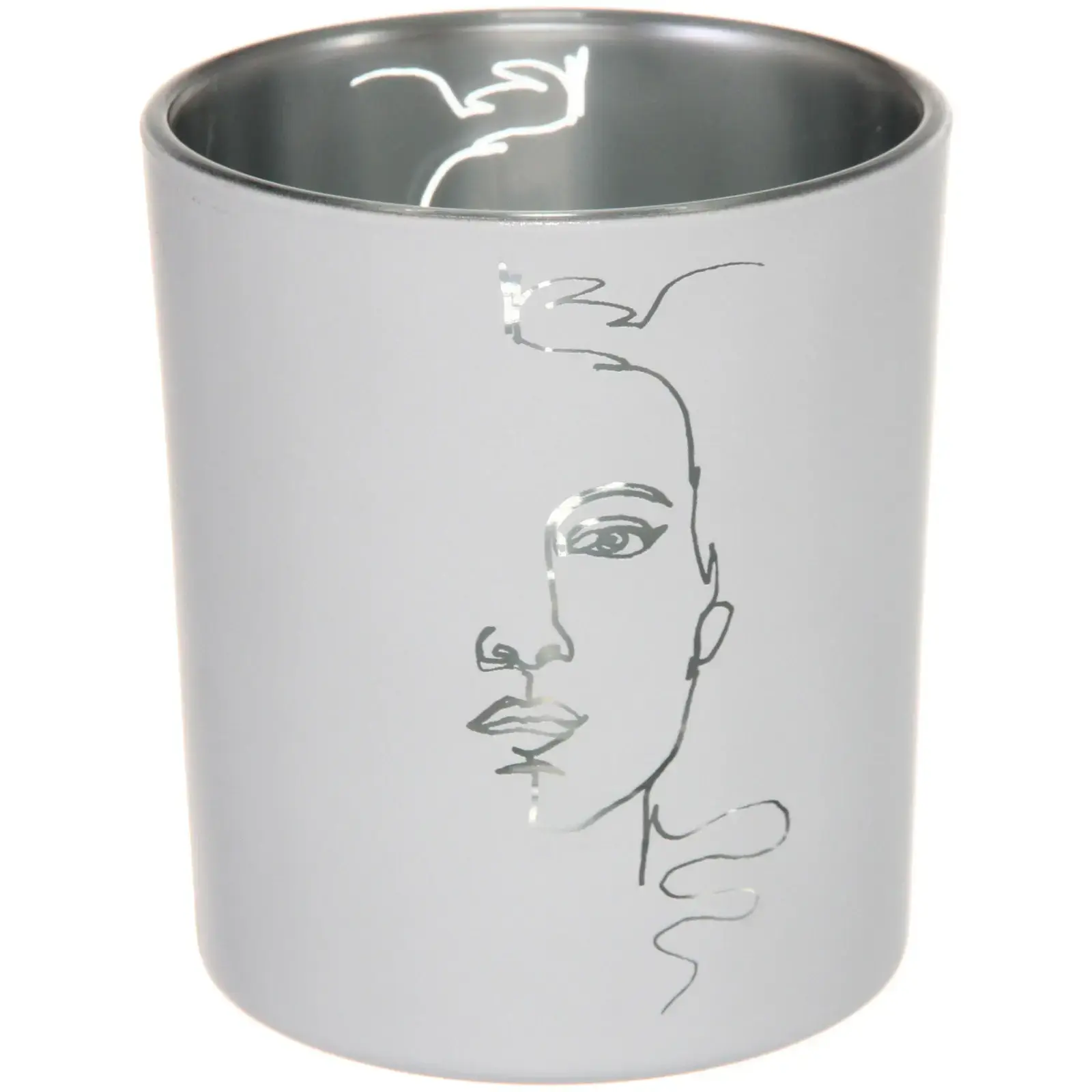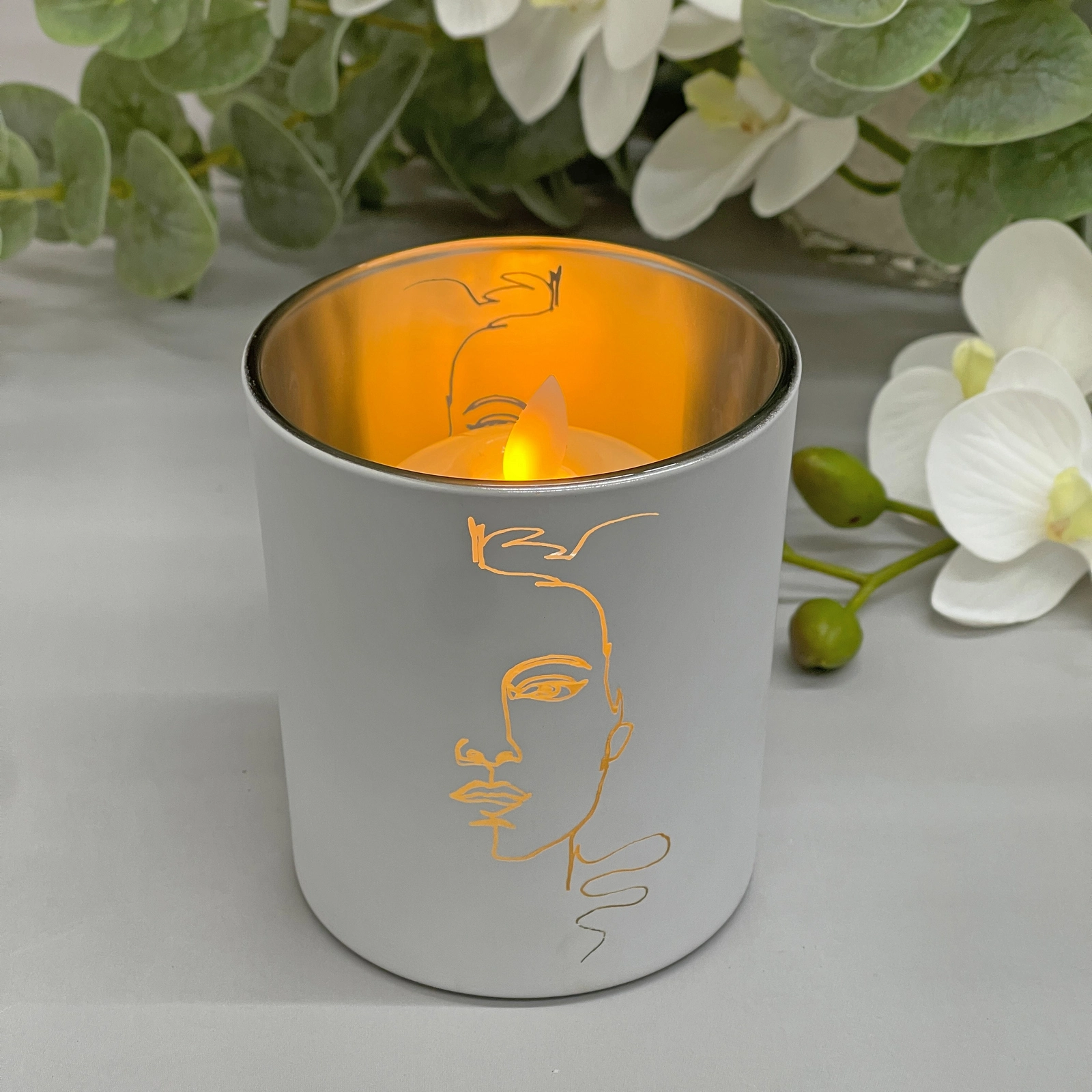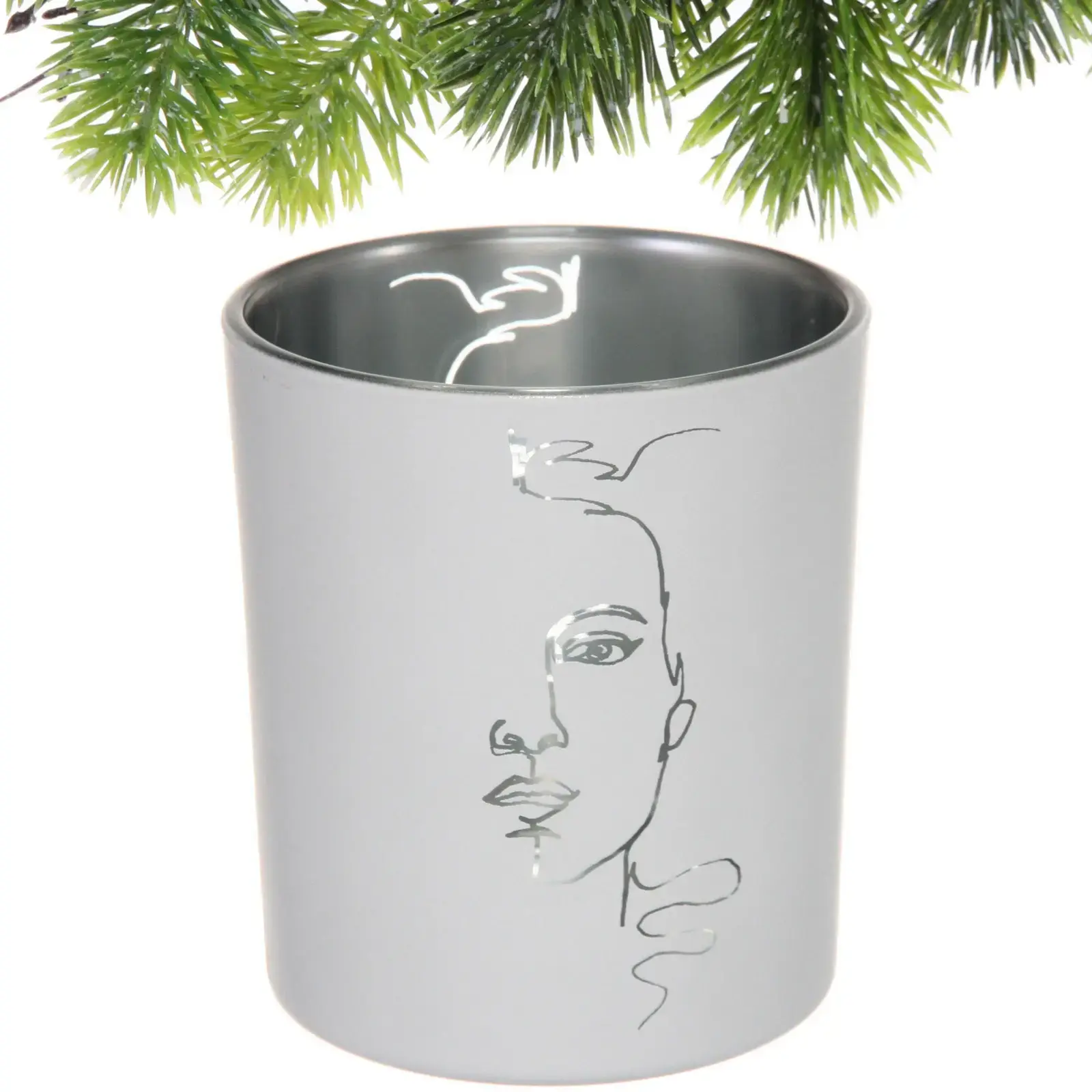 Размер подсвечника — 8,5x10 см, материал — стекло. Белый матовый оттенок внешней поверхности подчёркивает утончённый серебристый рисунок силуэта, а внутреннее глянцевое покрытие усиливает отражение света свечи, создавая мягкое мерцание. Лёгкий, но устойчивый, он станет вашим любимым элементом декора для создания уюта в повседневной жизни.