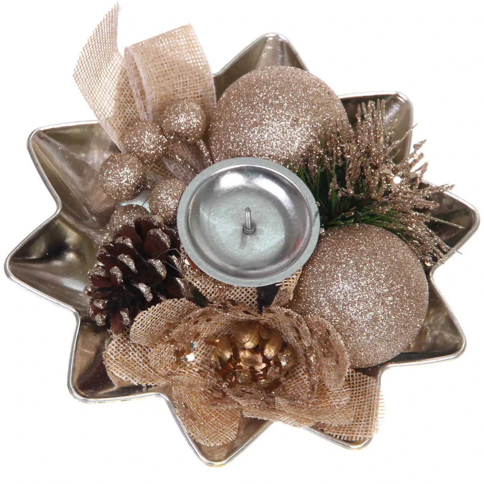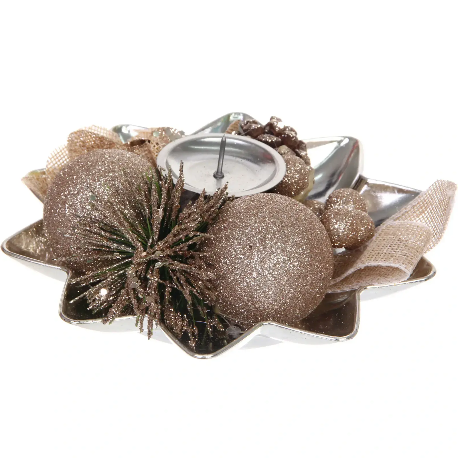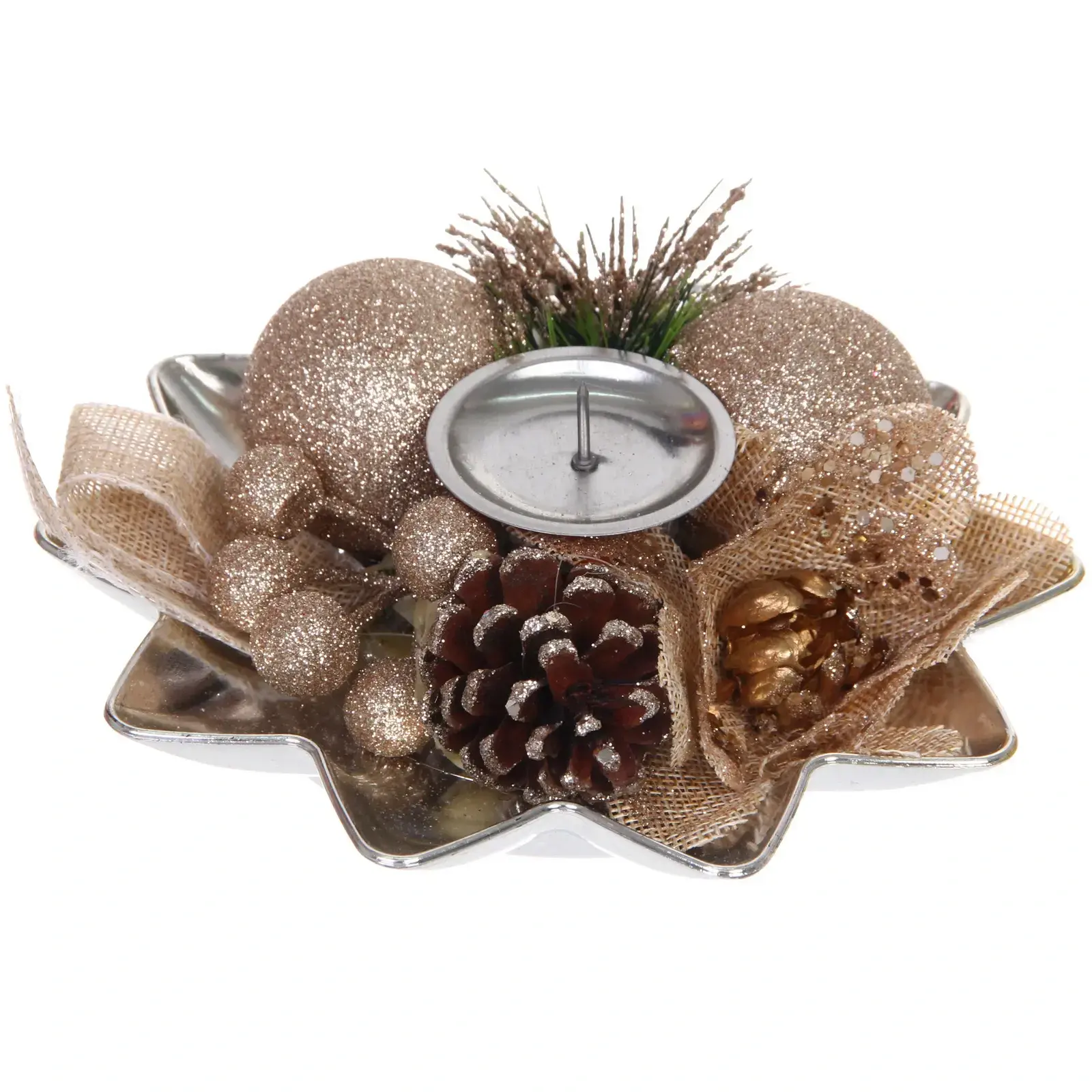 Подсвечник новогодний «Изящный вечер» — это идеальный элемент декора для вашего дома в праздничный сезон. Его изысканный дизайн и теплые оттенки шампани создают уютную атмосферу, которая привлечет внимание ваших гостей и добавит волшебства в новогодние праздники.