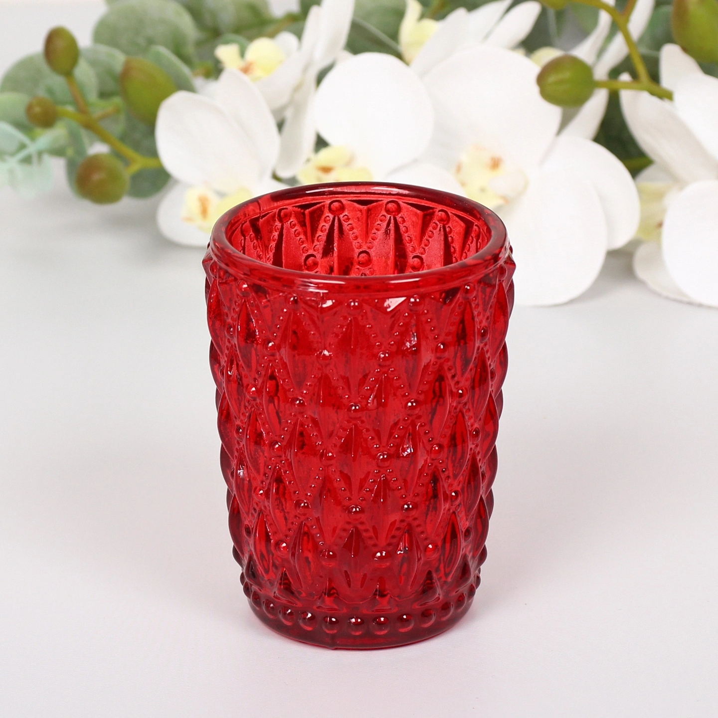 Создайте особое настроение в интерьере с помощью элегантного подсвечника "Самоцвет". Его насыщенный красный цвет и рельефная поверхность в форме ромбов с аккуратными точками придают изделию выразительность и чувство уюта. При зажигании свечи теплый свет мягко играет на гранях узора, создавая чарующие блики.