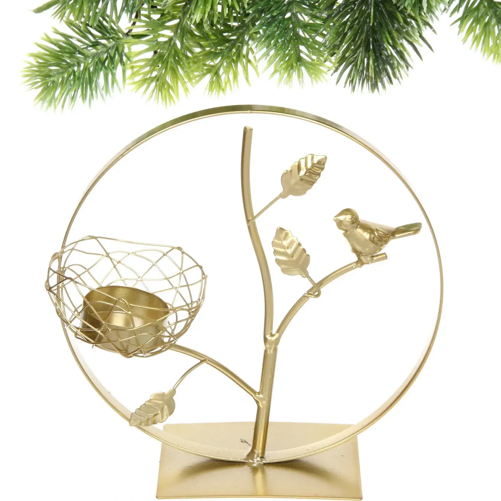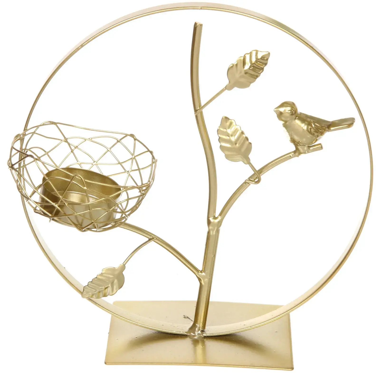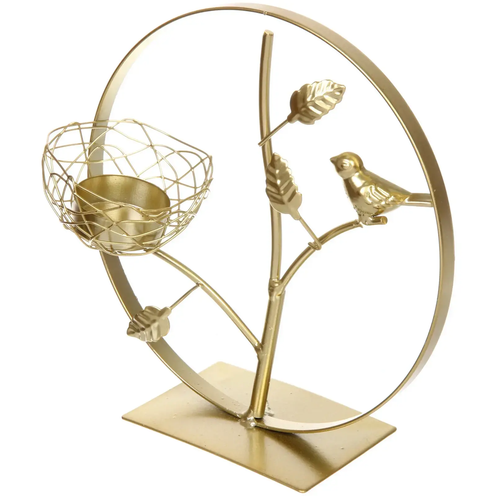Подсвечник «ШАРМ - Пение птиц» — это не просто элемент декора, а настоящий акцент вашего интерьера. Его изысканный золотистый цвет и уникальный дизайн в виде дерева с птицей и гнездом придают помещению особую атмосферу тепла и уюта. Этот подсвечник станет идеальным дополнением для романтического вечера или уютного семейного ужина.