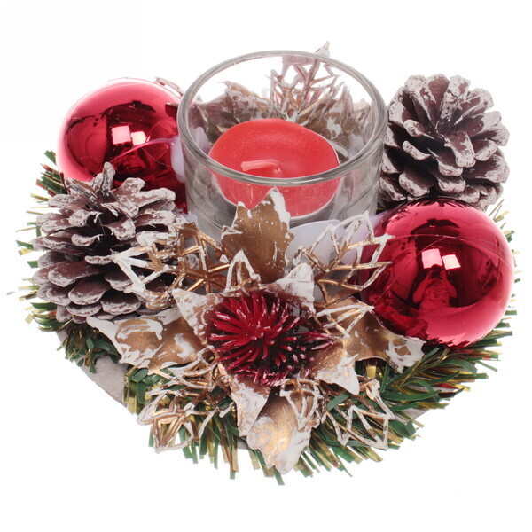 Подсвечник имеет высоту 13 см и выполнен в красном цвете, что делает его ярким акцентом в любом декоре. Он украшен декоративными элементами, которые придают ему уникальность и стиль. Используйте его для создания красивых композиций с другими новогодними украшениями, чтобы сделать ваш праздник незабываемым.