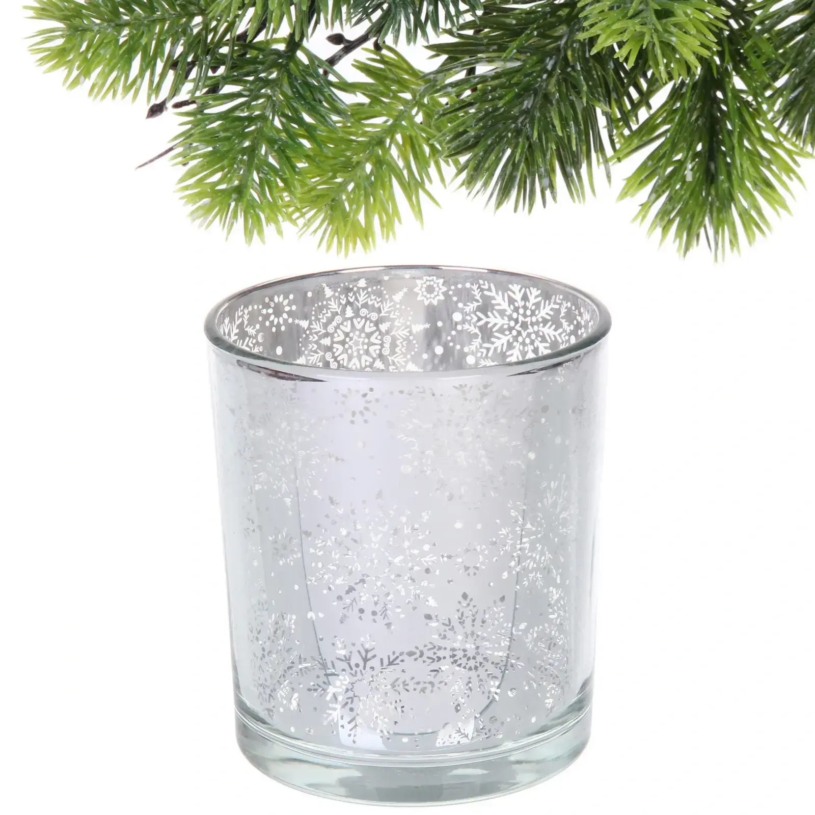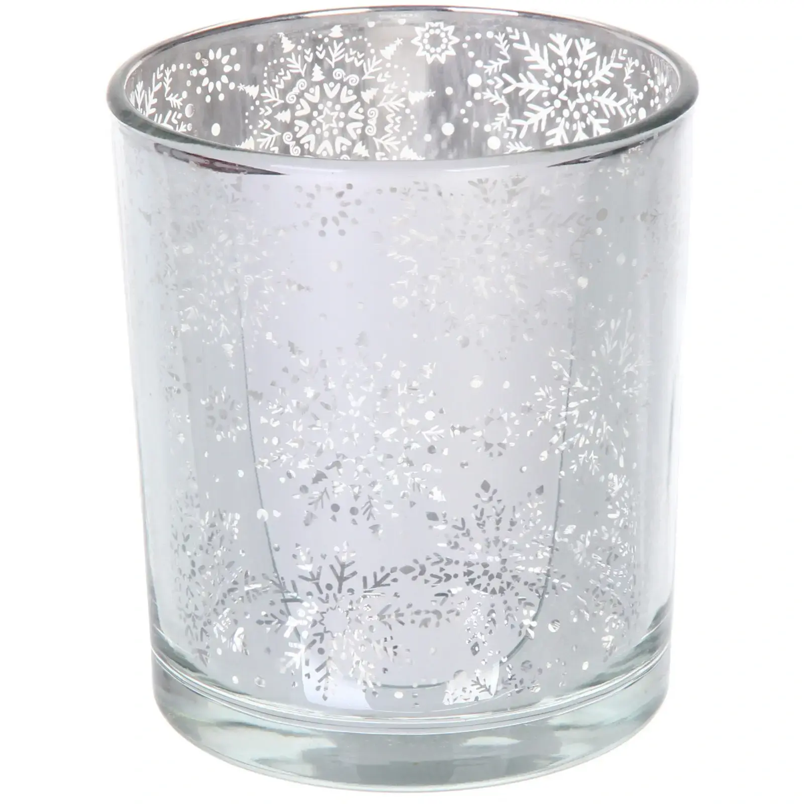 Размеры подсвечника составляют 8,5 см в диаметре и 10 см в высоту, что делает его компактным и удобным для размещения на столе или полке. Изготовленный из качественного стекла, он обладает прозрачной поверхностью, которая подчеркивает красоту свечи и создает эффект свечения. Узор снежинок добавляет зимнего настроения и делает этот подсвечник уникальным.