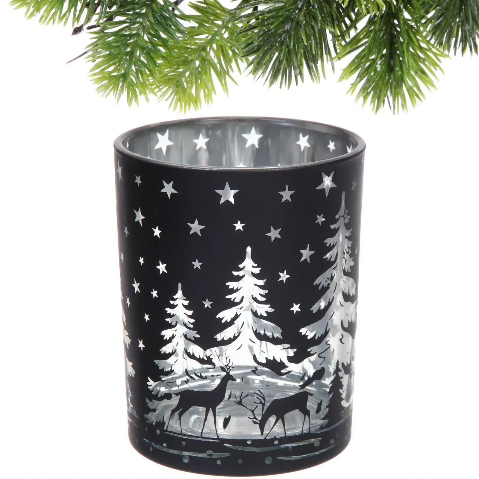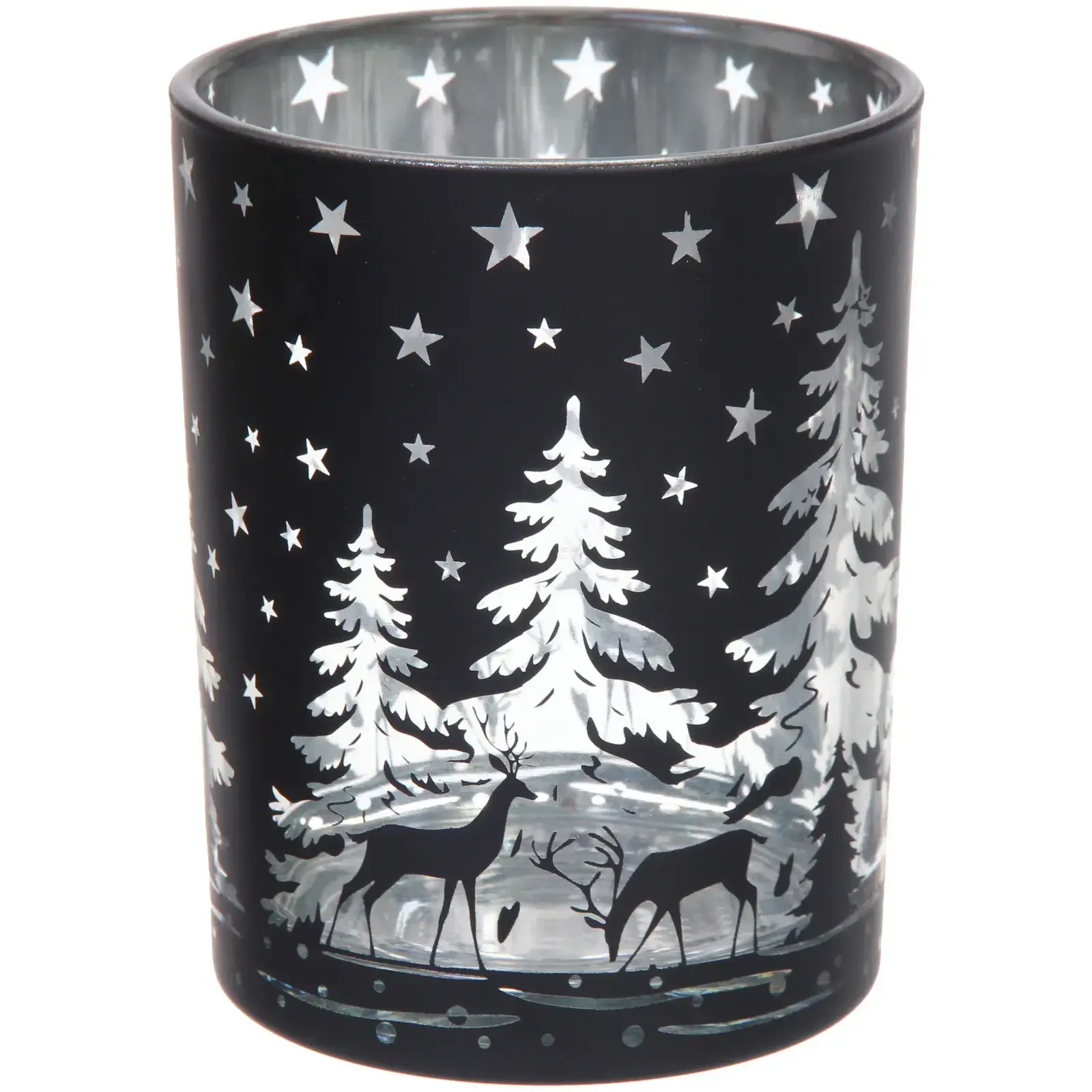 Создайте уютную атмосферу в вашем доме с подсвечником «Снежный лес». Этот стильный и элегантный подсвечник выполнен в черном цвете с уникальным зимним дизайном, который включает изображения елей, оленей и звезд. Он станет идеальным дополнением к вашему интерьеру, особенно в праздничный сезон, добавляя нотку волшебства и тепла.