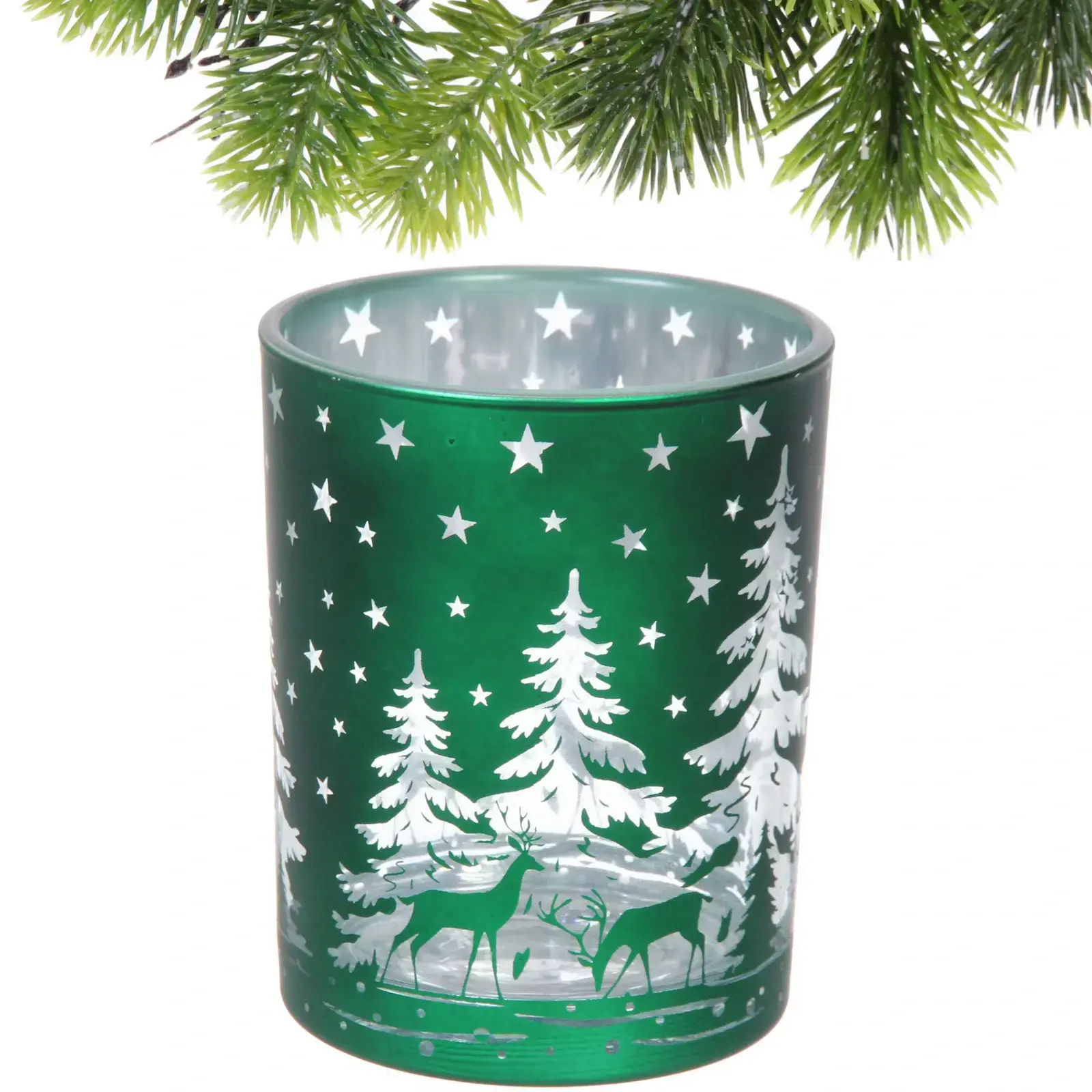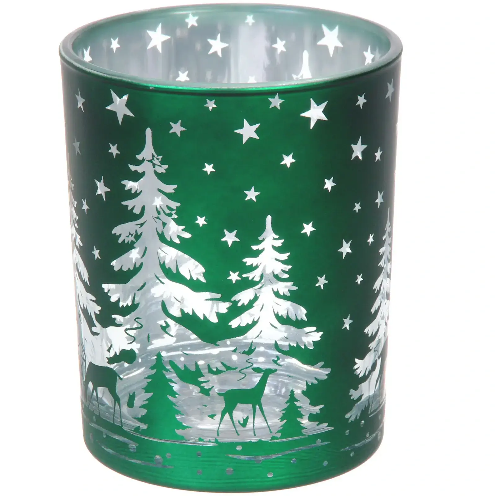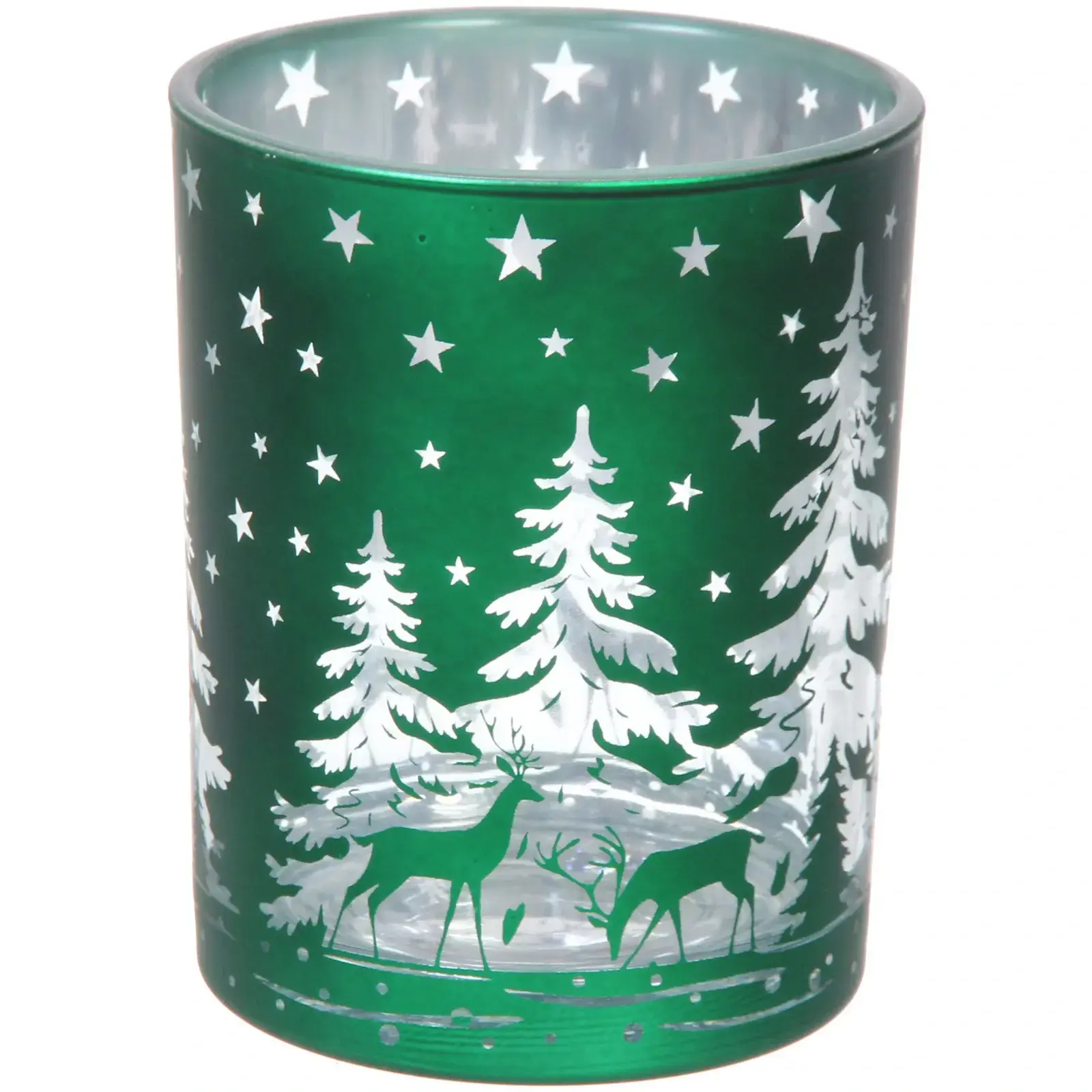Размеры подсвечника составляют 10х12,5 см, что делает его компактным и удобным для размещения в любом уголке вашего дома. Изумрудный цвет и белые силуэты зимнего пейзажа делают его универсальным элементом декора, который легко впишется в любой интерьер. Не упустите возможность добавить этот уникальный подсвечник в вашу коллекцию праздничных аксессуаров!