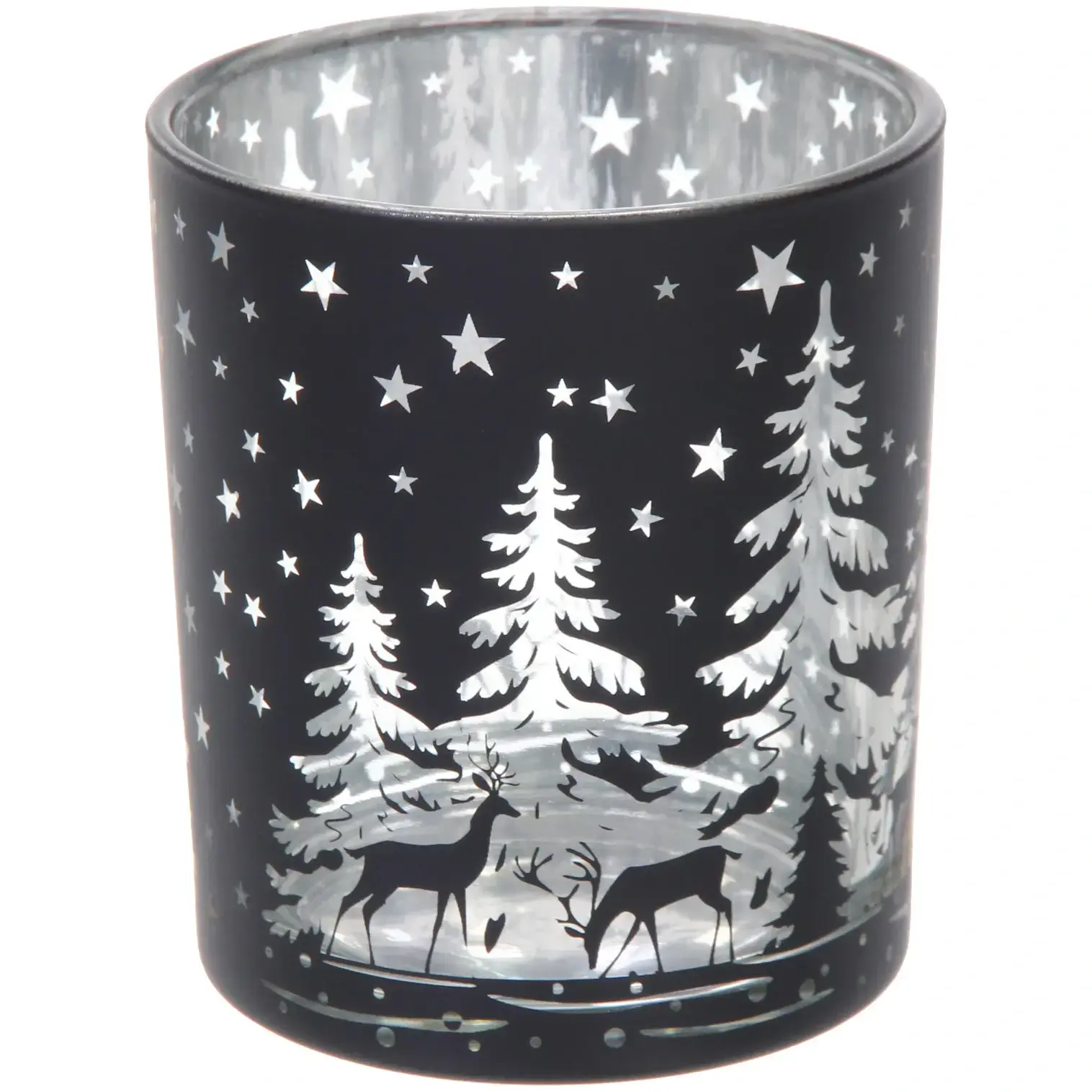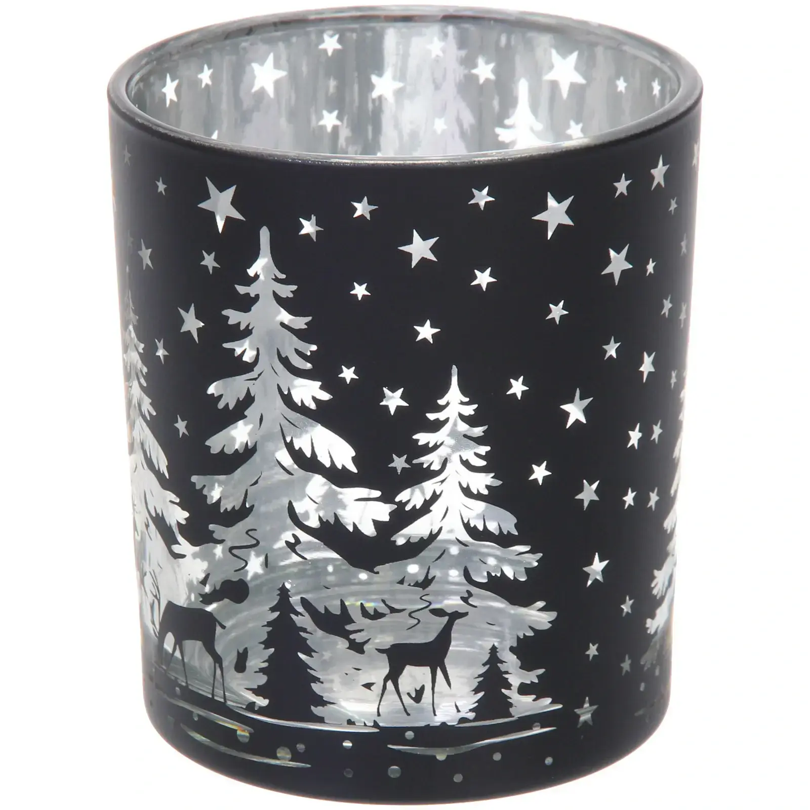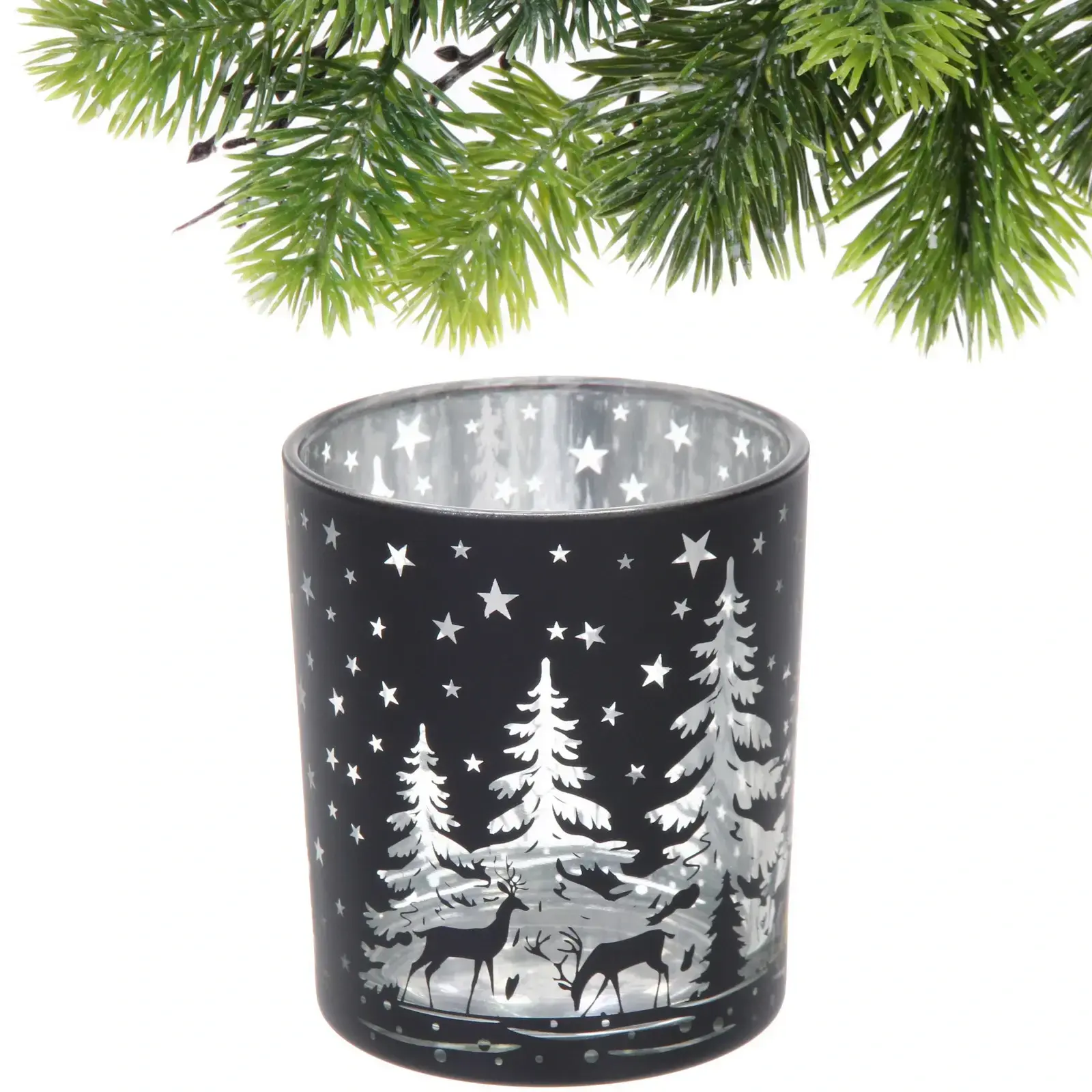 Подсвечник «Снежный лес» — это идеальный элемент декора для вашего дома, который добавит нотку волшебства и уюта в любое пространство. Его уникальный дизайн с силуэтами деревьев и оленей создает атмосферу зимнего леса, что делает его отличным выбором для новогодних праздников и романтических вечеров.