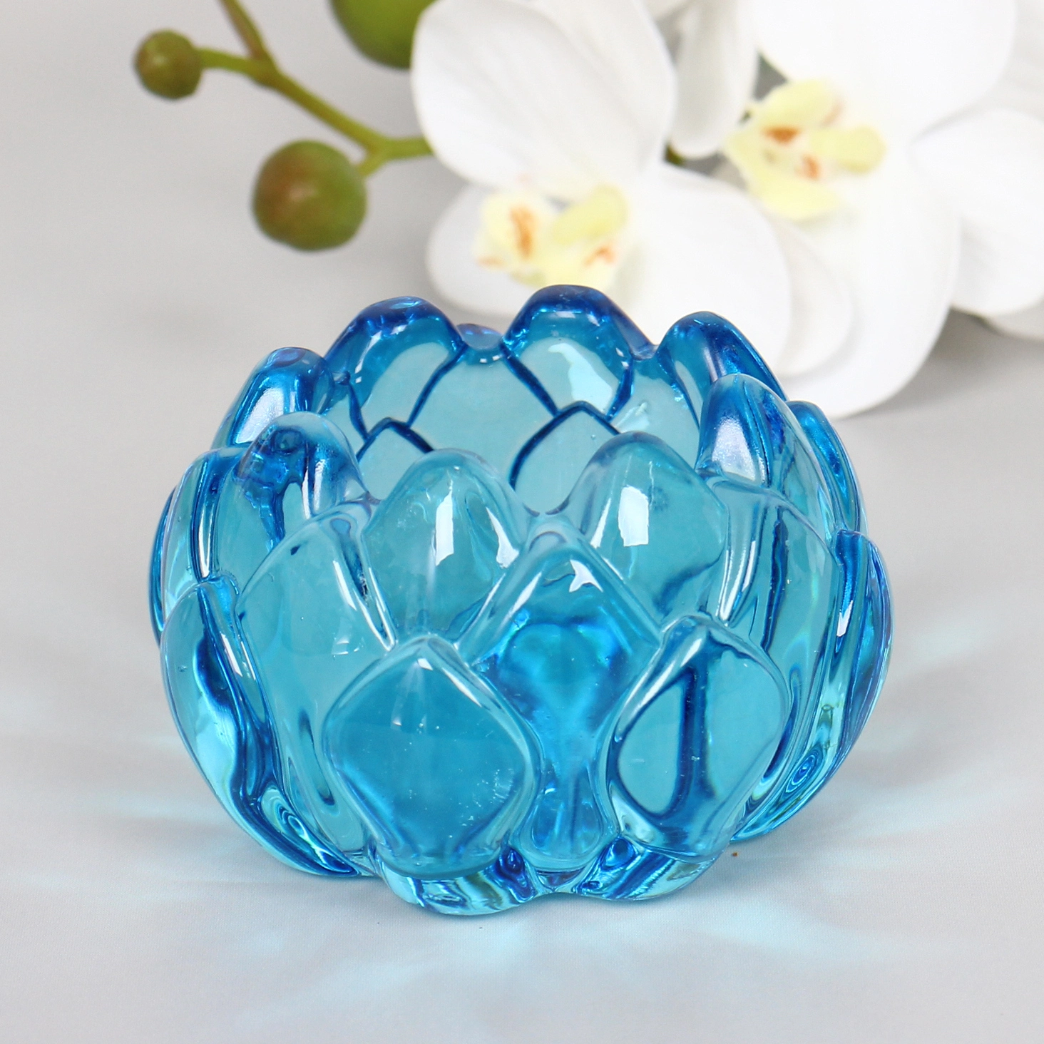 Привнесите в дом атмосферу уюта и спокойствия с подсвечником "Топаз" из голубого стекла. Его рельефная поверхность, выполненная в виде граней или лепестков, красиво рассеивает свет, создавая мягкое сияние и уникальные блики, которые наполняют пространство теплом и комфортом.