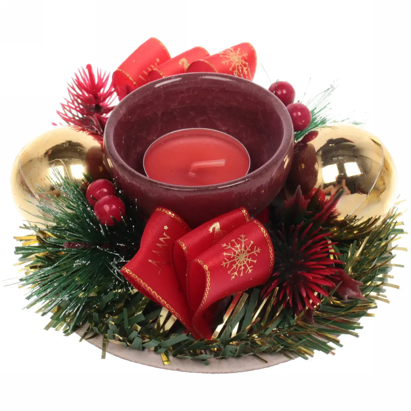 Разместите в центре праздничного стола как самостоятельный элемент или дополните композицию еловыми веточками и шарами. Безопасен для использования с небольшими свечами диаметром до 4 см.