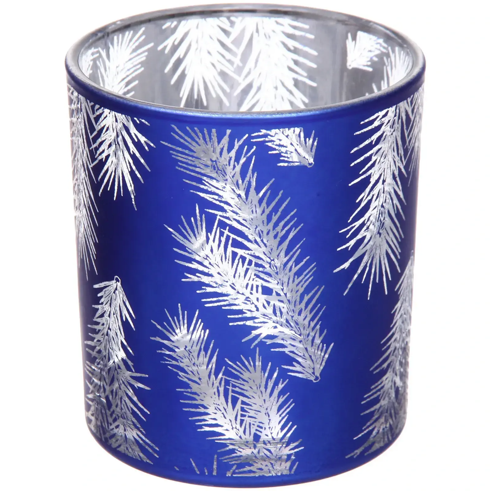 Создайте атмосферу уюта и тепла с подсвечником «Волшебная ветвь». Этот стильный аксессуар не только украсит ваш интерьер, но и станет идеальным дополнением для романтического вечера или праздничного стола. Его изысканный синий цвет и декоративный узор из серебристых веточек хвойных деревьев придают ему уникальность и шарм.