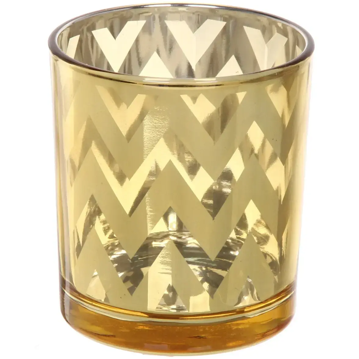 Этот оригинальный подсвечник выполнен из стекла с декоративным зиг-загом и золотистым оттенком, создающим теплую и привлекательную атмосферу. Он идеально подходит для украшения интерьера, проведения романтических вечеров или приятных мероприятий дома.
