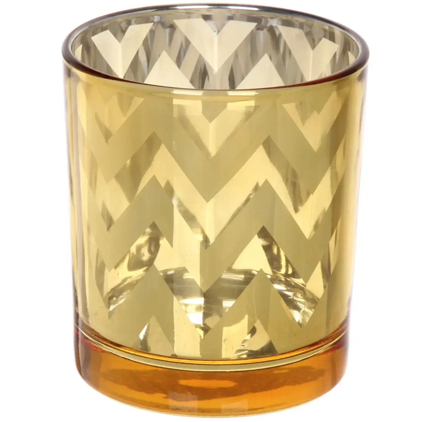 Подсвечник «Зиг-заг» — это гармоничное сочетание декоративной изысканности и практичности. Его золотистый цвет с прозрачными вставками в виде зигзагообразного узора легко впишется в любой интерьер, создавая тёплую и благородную атмосферу в комнате. Такая деталь станет ярким акцентом на столе, полке или каминной полке, а при зажигании свечи наполняет пространство мягким мерцающим светом.