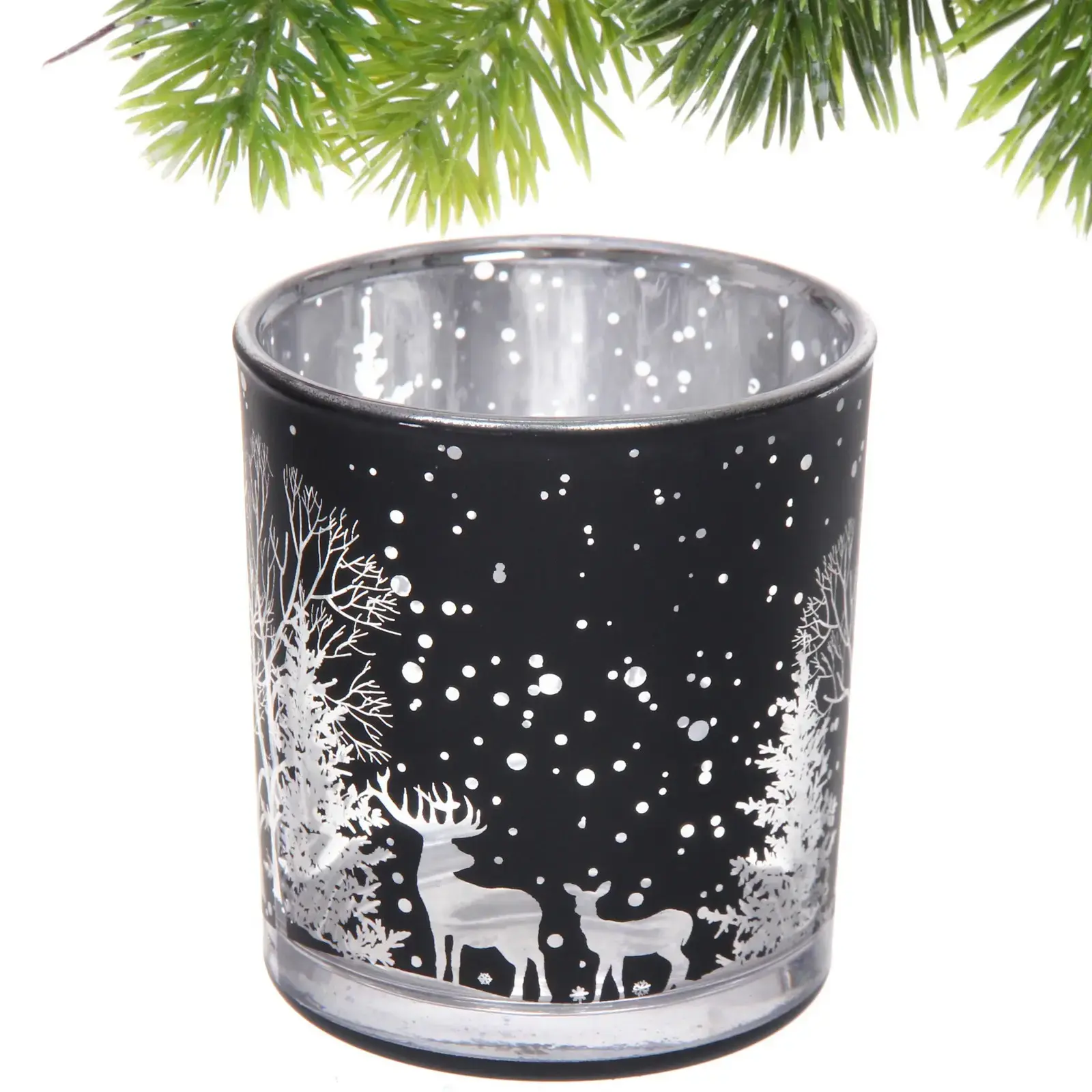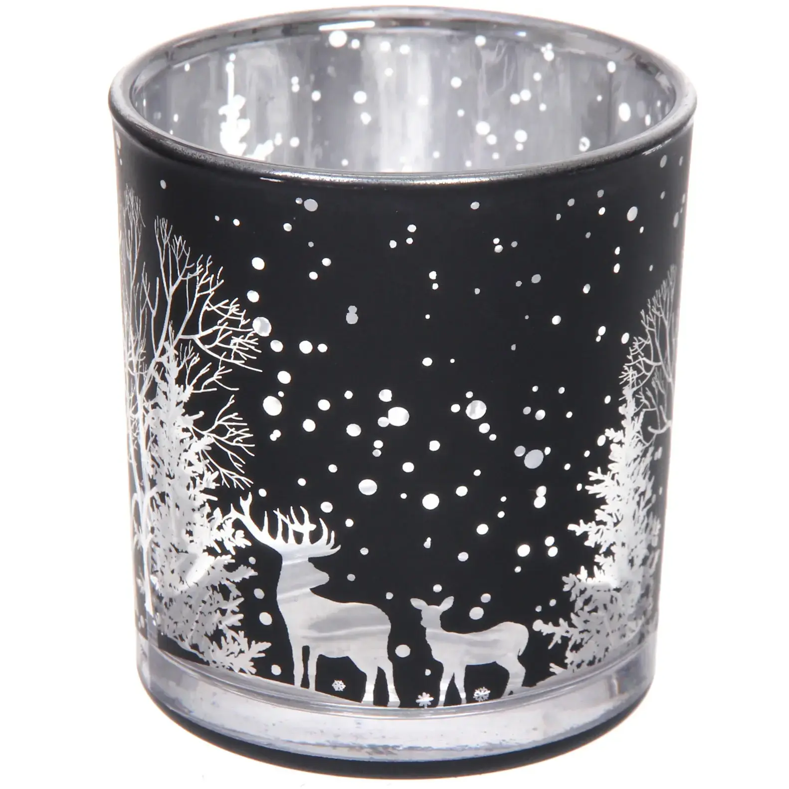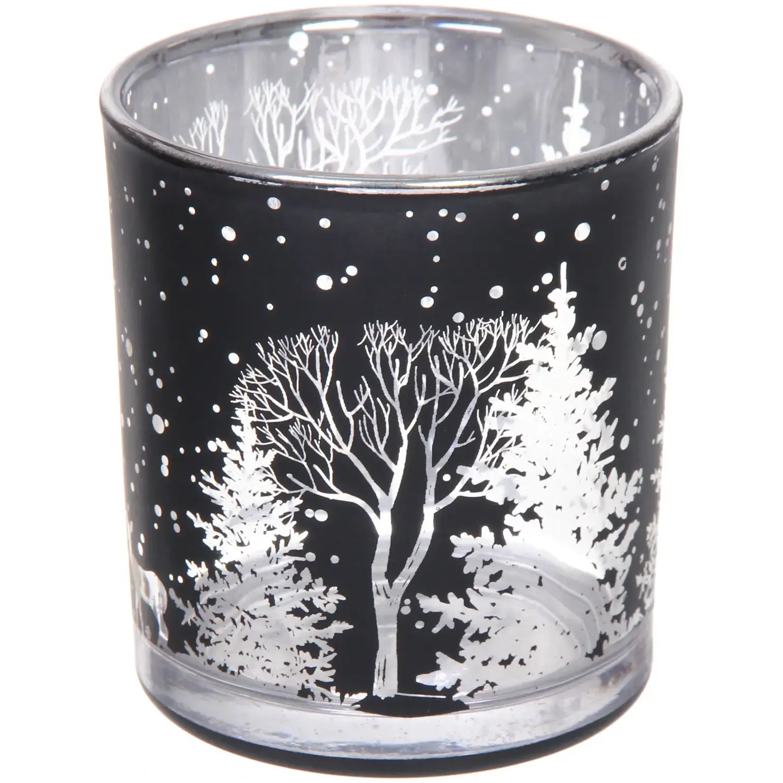 Подсвечник «Зимнее сияние» — это идеальный элемент декора для вашего дома, который добавит нотку зимней сказки и уюта в любое пространство. Его стильный черный цвет и изысканный дизайн с белыми рисунками лесных деревьев и оленей создают уникальную атмосферу, которая будет радовать вас и ваших гостей в холодные зимние вечера.