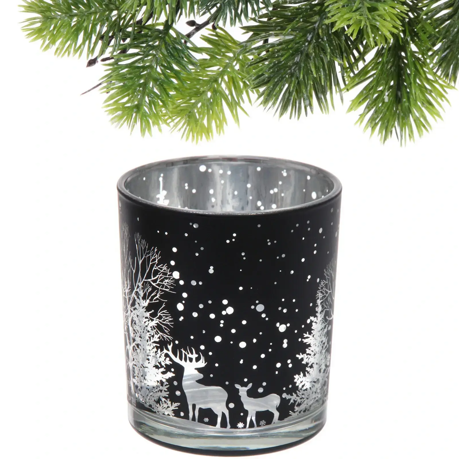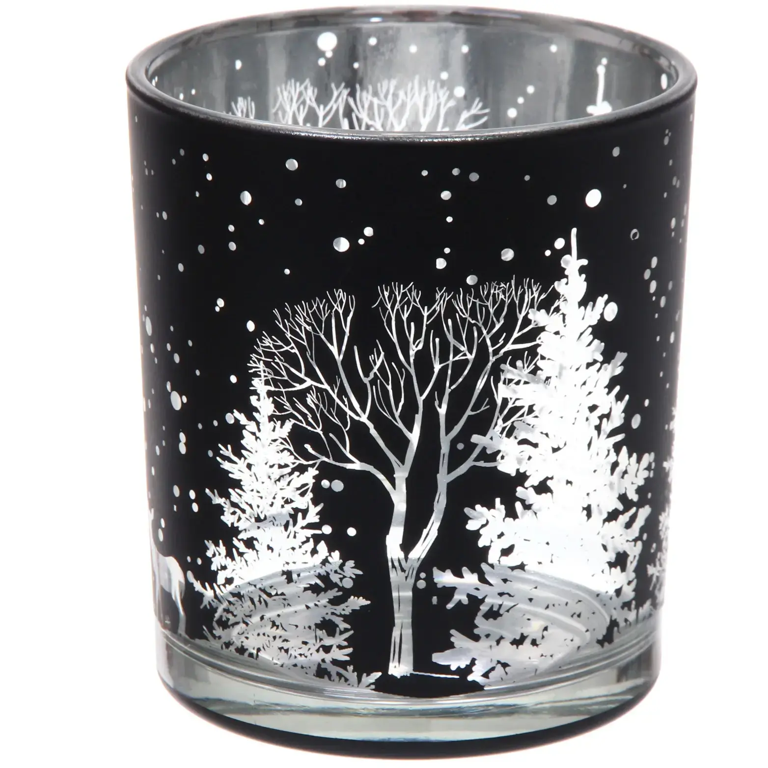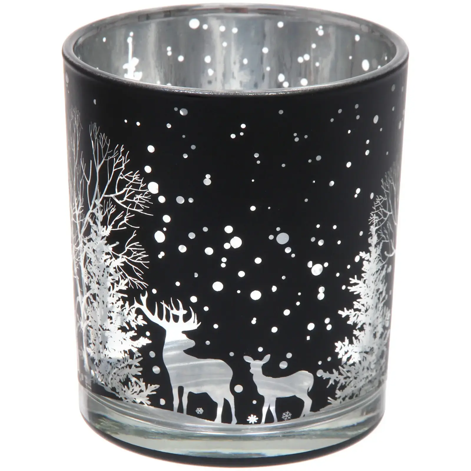 Этот стильный подсвечник станет идеальным дополнением вашего интерьера, придавая ему уют и праздничное настроение. Его уникальный дизайн с зимними мотивами, включая изображения оленей и снежинок, создает атмосферу тепла и уюта в холодные зимние вечера.