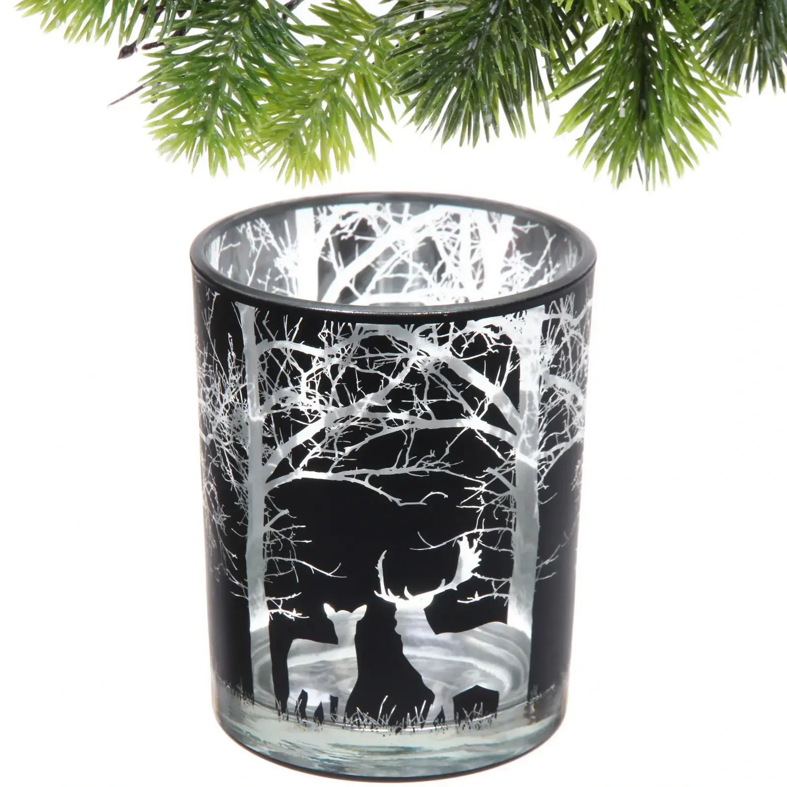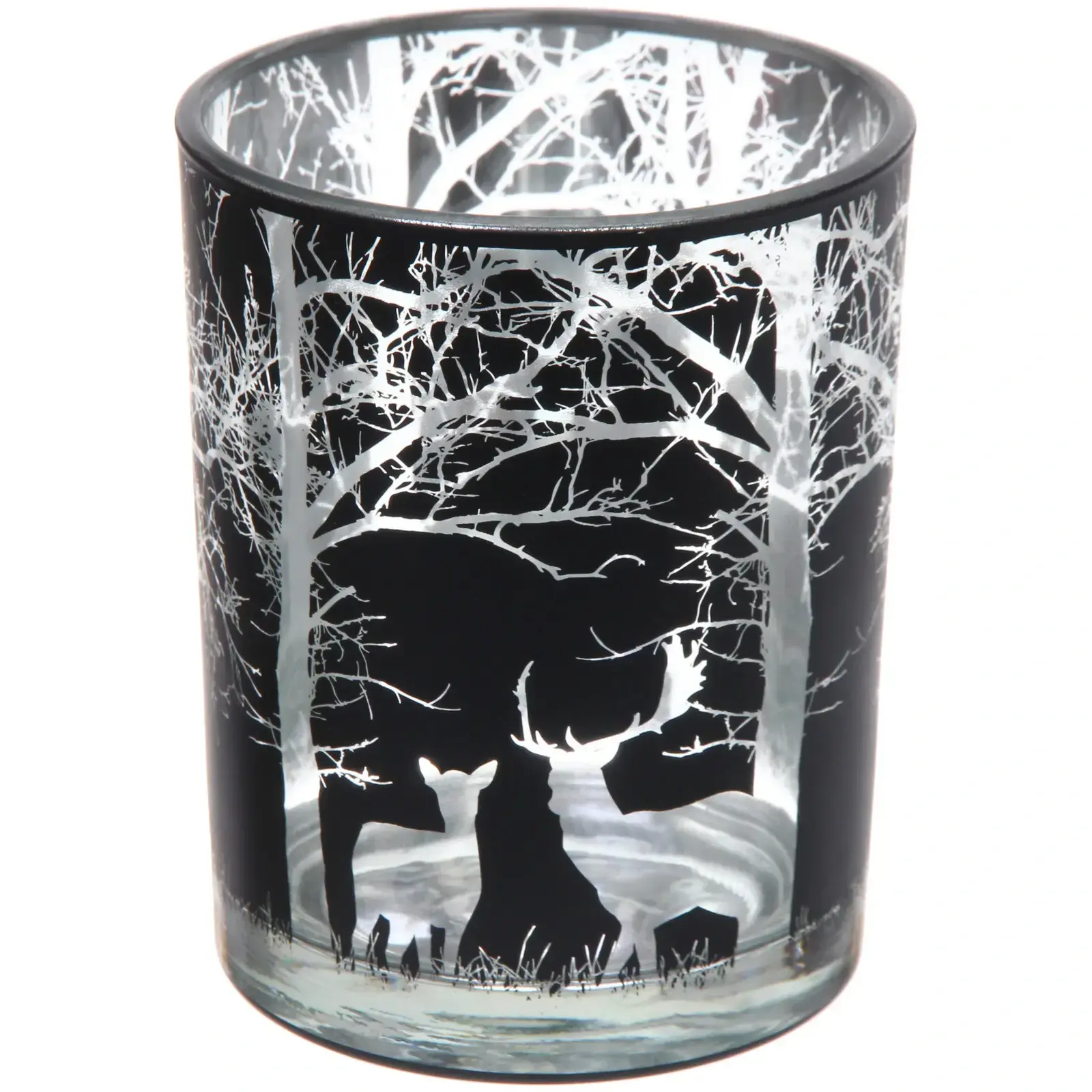 Подсвечник «Зимний лес» — это идеальный элемент декора для вашего дома, который добавит нотку зимней сказки и уюта в любое пространство. Его стильный черный цвет и изящный дизайн с белыми силуэтами деревьев и оленей создают уникальную атмосферу, которая будет радовать вас и ваших гостей. Этот подсвечник станет отличным акцентом на праздничном столе или уютном уголке вашего дома.