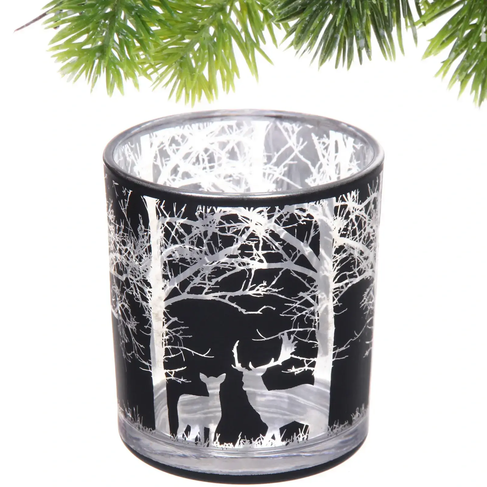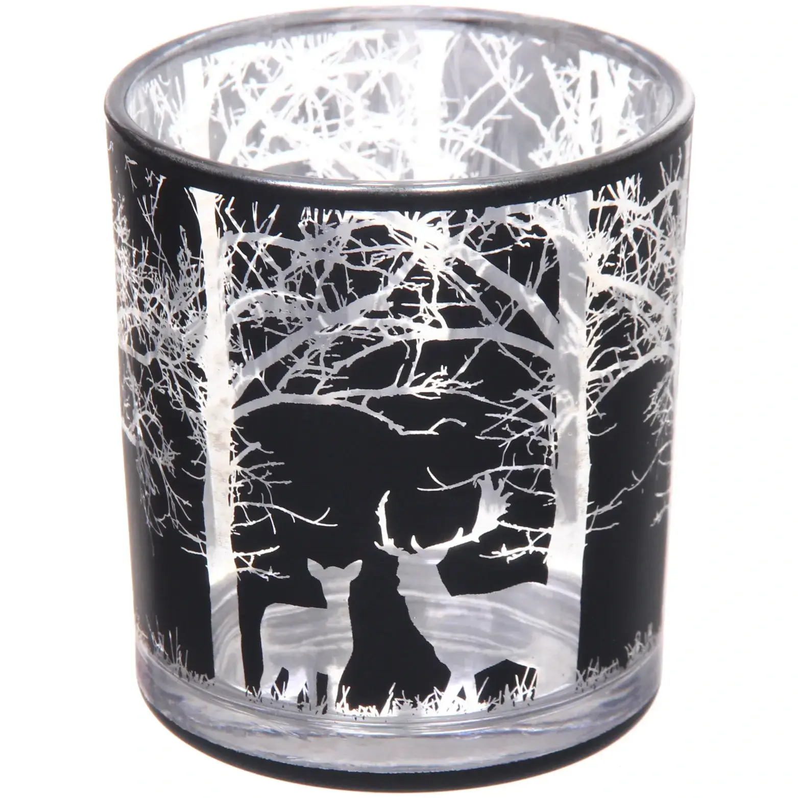 Создайте атмосферу зимнего леса в вашем доме с подсвечником «Зимний лес». Этот стильный черный подсвечник размером 7х7,8 см станет идеальным дополнением к вашему интерьеру, добавляя уют и тепло в любое пространство. Его уникальный дизайн с серебристыми рисунками деревьев и силуэтами оленей создает волшебное освещение, которое будет радовать вас и ваших гостей.