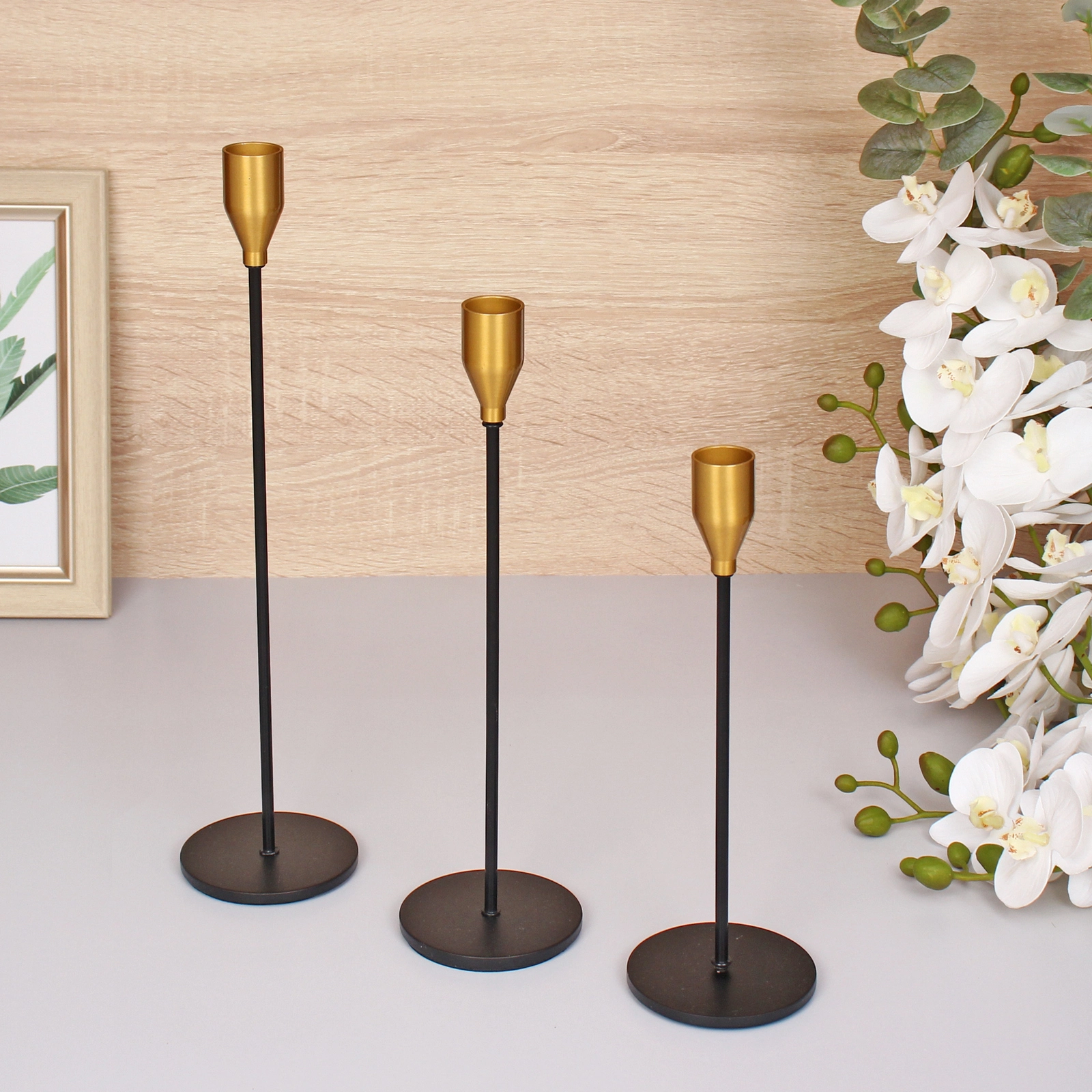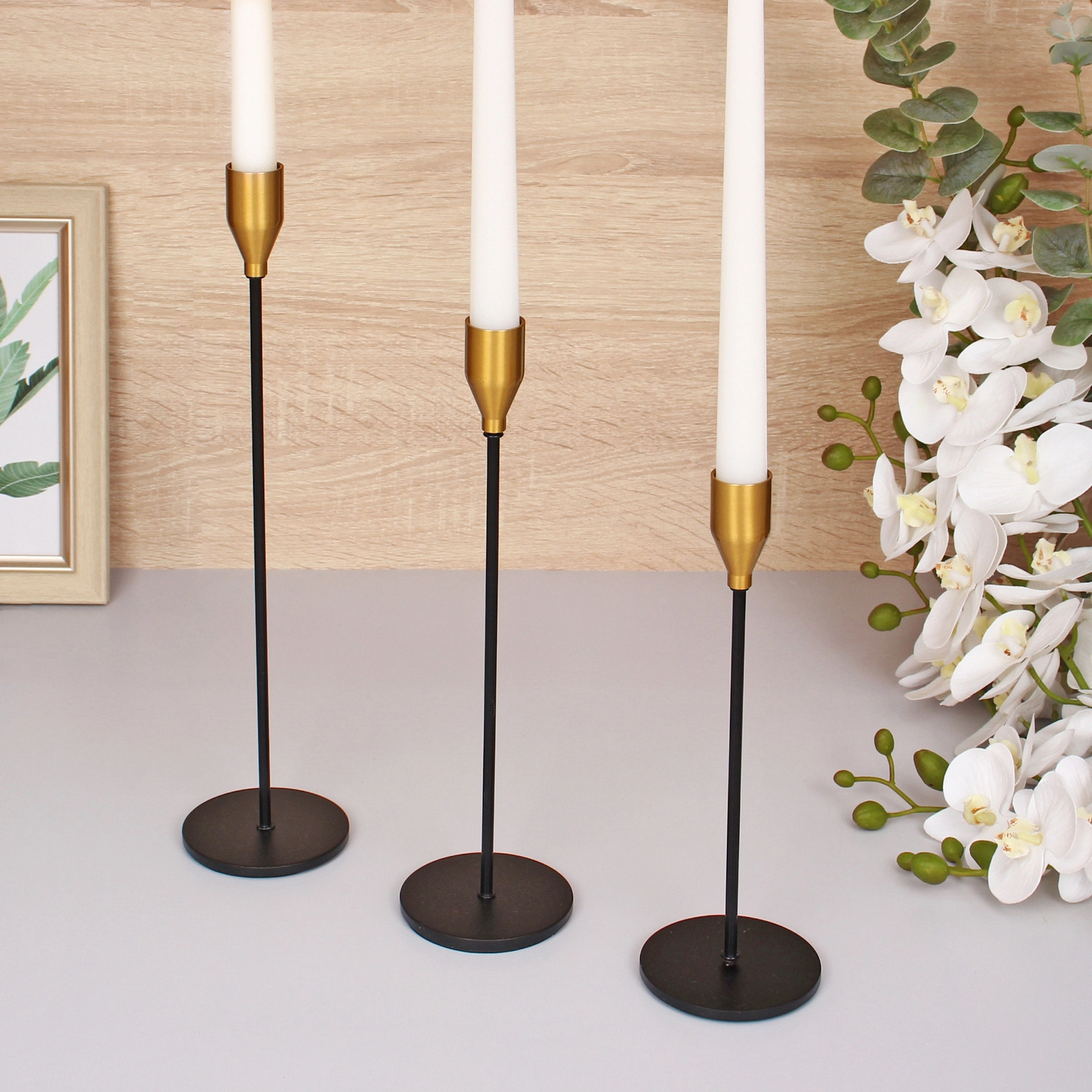Преимущества этого набора — стильный дизайн, долговечные материалы и возможность создания теплого освещения в любой комнате. Компактные размеры позволяют удобно разместить подсвечники на столе, полке или камине, добавляя в пространство уют и атмосферу комфорта.