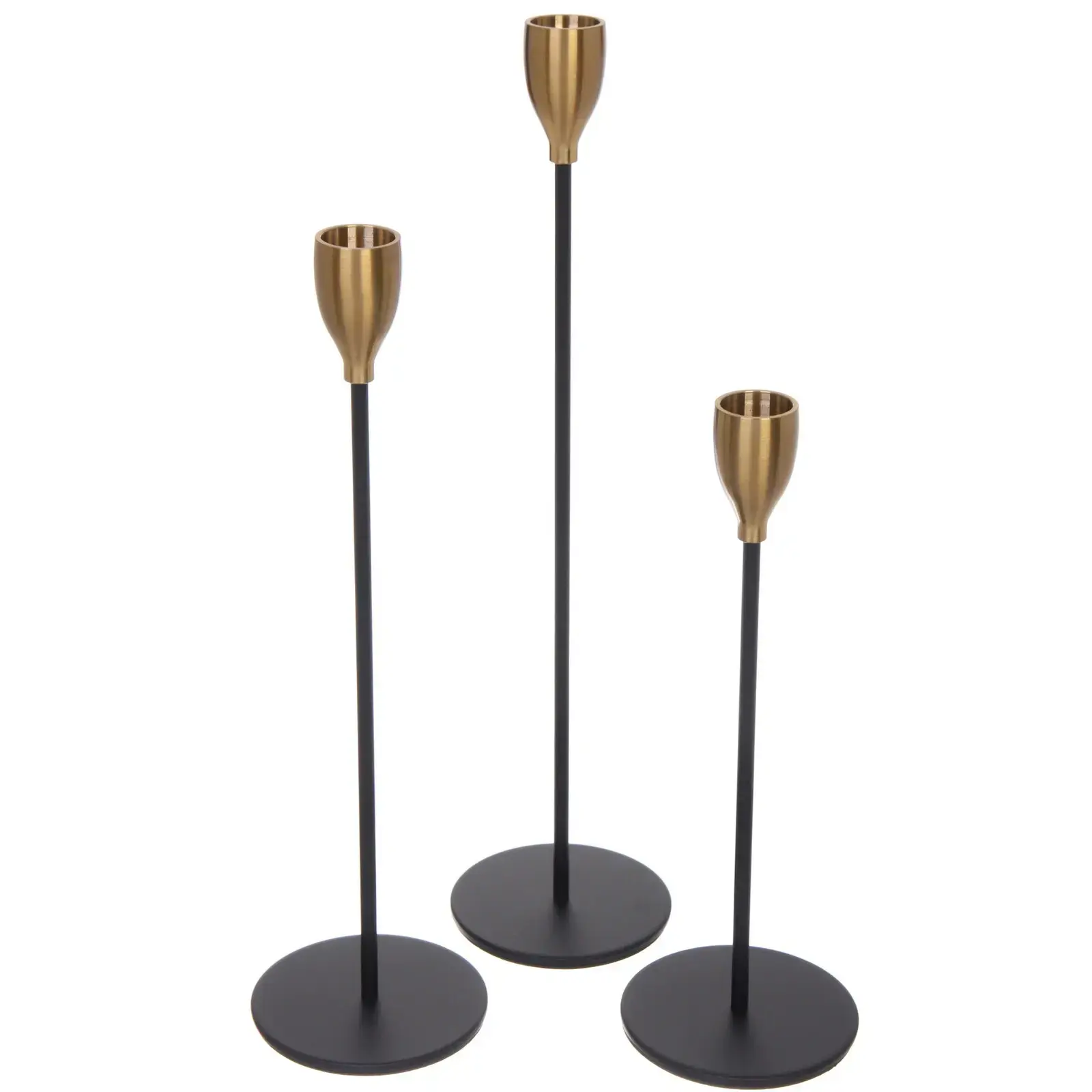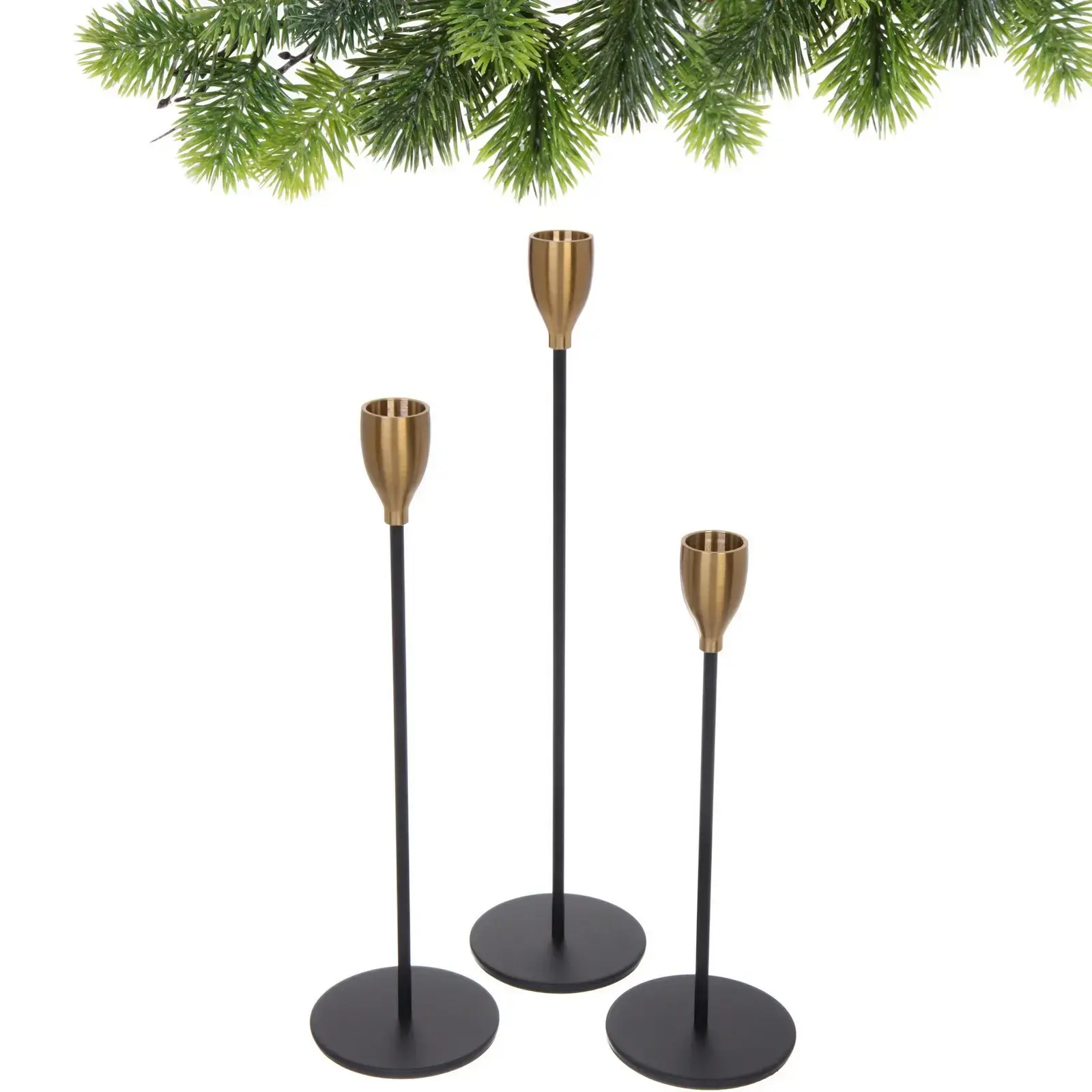 Подсвечники выполнены из прочного металла с матовой черной поверхностью, каждая часть прекрасно сочетается с различными стилями интерьера. Верхние держатели в металлическом цветовом исполнении под золото придают благородство и элегантность. Универсальный размер позволяет использовать как обычные свечи, так и ароматические или декоративные.